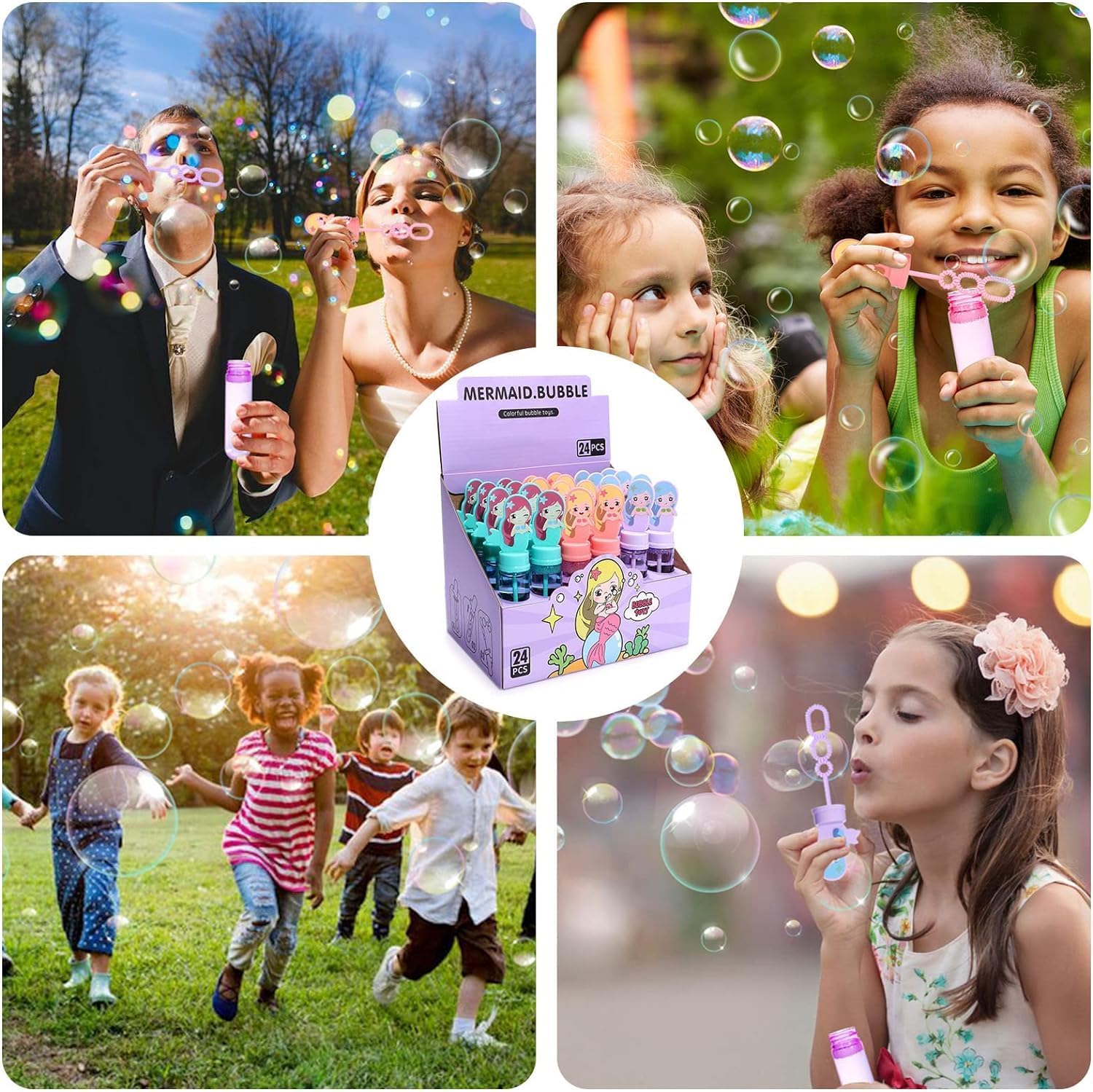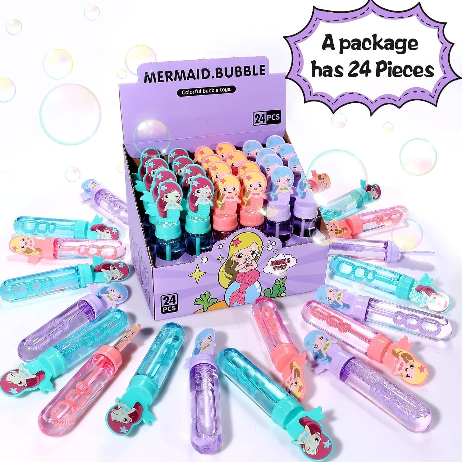 Montchi 24 Pack Mermaid Bubble Wands for Kids Bubbles Party Favors Mini Bubbles Bulk Birthday Gift Classroom Prize Mermaid Pinata Filler Goody Bag Stuffer Girl Summer Beach Little Mermaid Party Favors