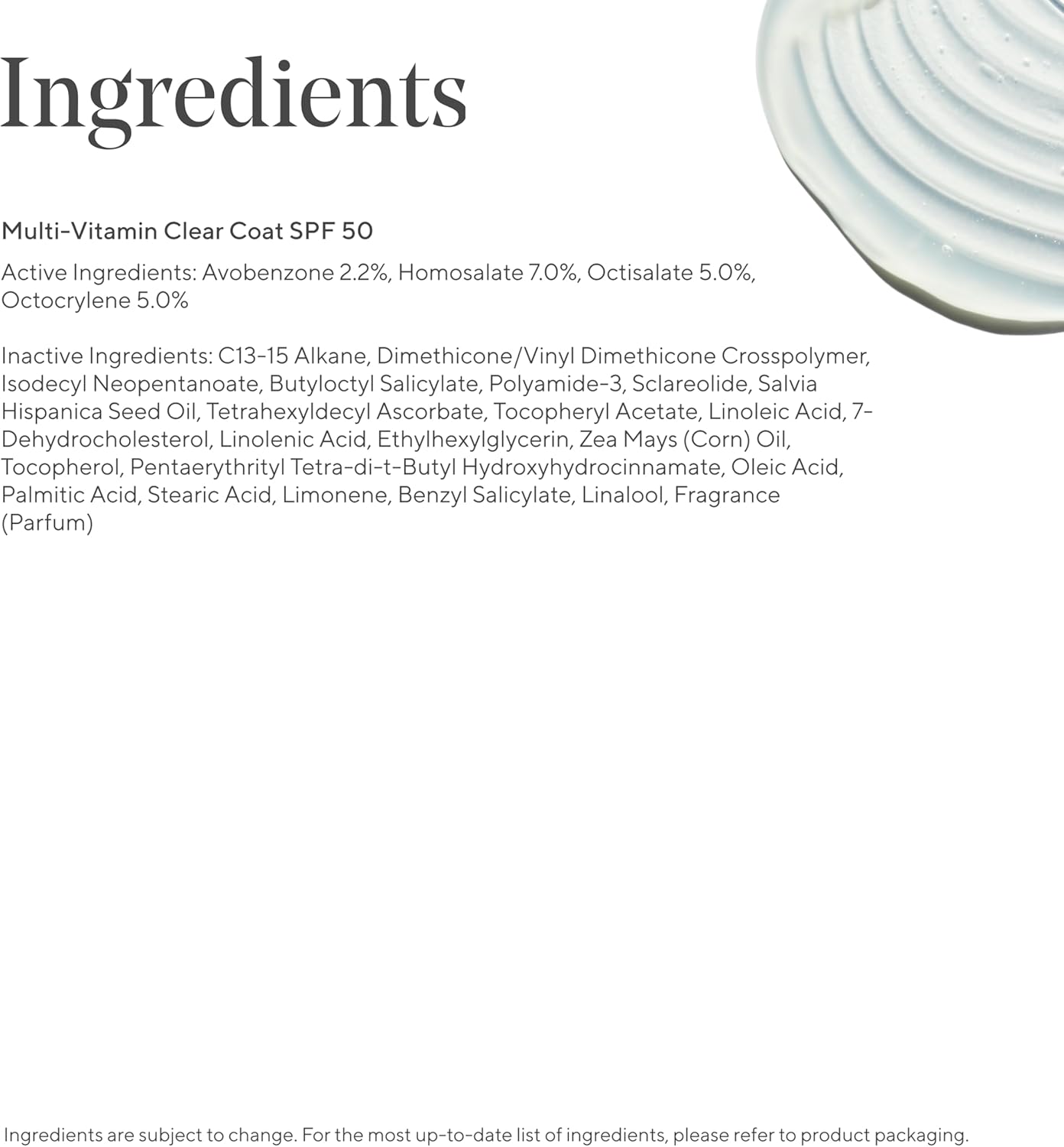 HOW TO USE: Apply Murad Multivitamin Clear Coat Sunscreen SPF 50 liberally to the face, neck and chest as the final step in your skincare routine
