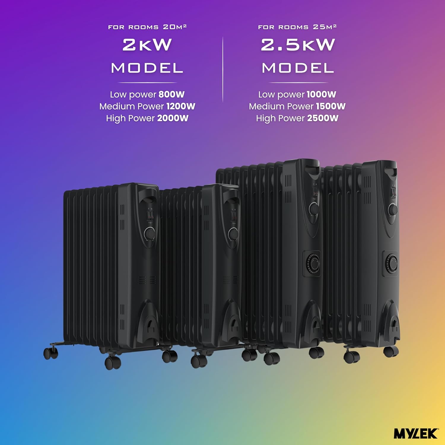 SAFETY FIRST: Mylek are a company renowned for putting safety first. So don’t worry about the unit being accidentally knocked over, with its Safety Tip Over Switch and Advanced Overheat Cut Out facility rounded off fins which makes them safe around children, elderly and pets. All this gives you peace of mind knowing you have one of the most stylish and safest oil heaters available