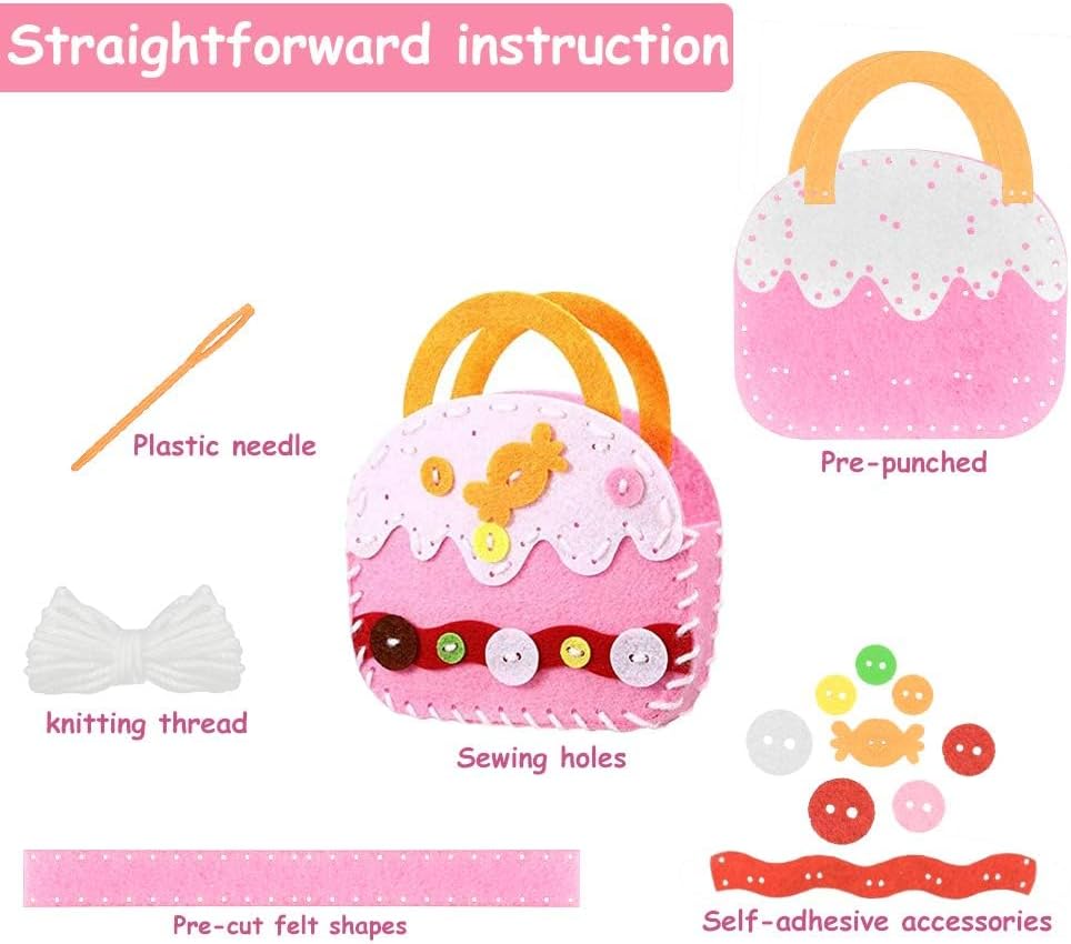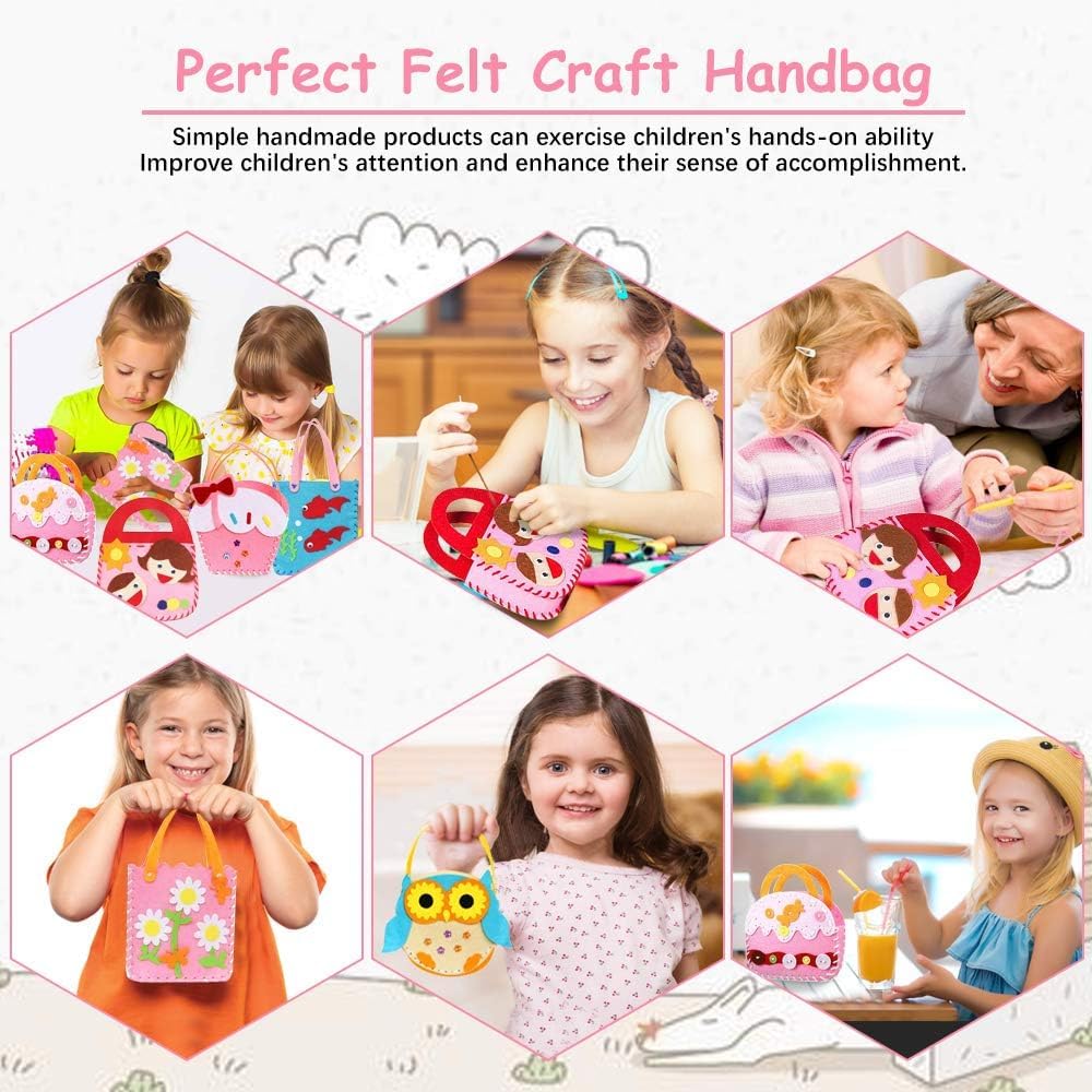 Perfect Felt Craft Handbag: A handicraft sewing handbag that allows children to give up video games and learn how to make handmade creative products. By letting children actively participate and interact with friends, they can let them enjoy the fun of handmade.