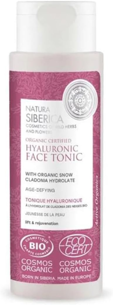 Natura Siberica Age Defying Hyaluronic Face Tonic is made using gentle hydrolats, often called floral or fragrant water. The hydrolat is obtained from the plant through gentle distillation, which ensures all the valuable antioxidant and active elements remain. Organic Siberian pine oil nourishes and softens skin.