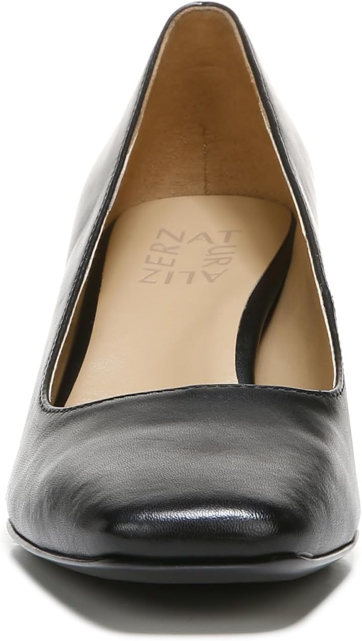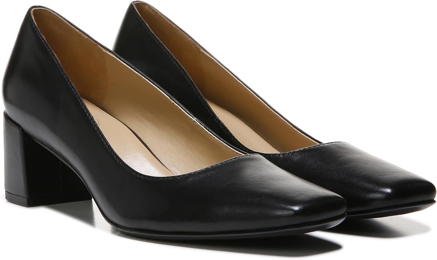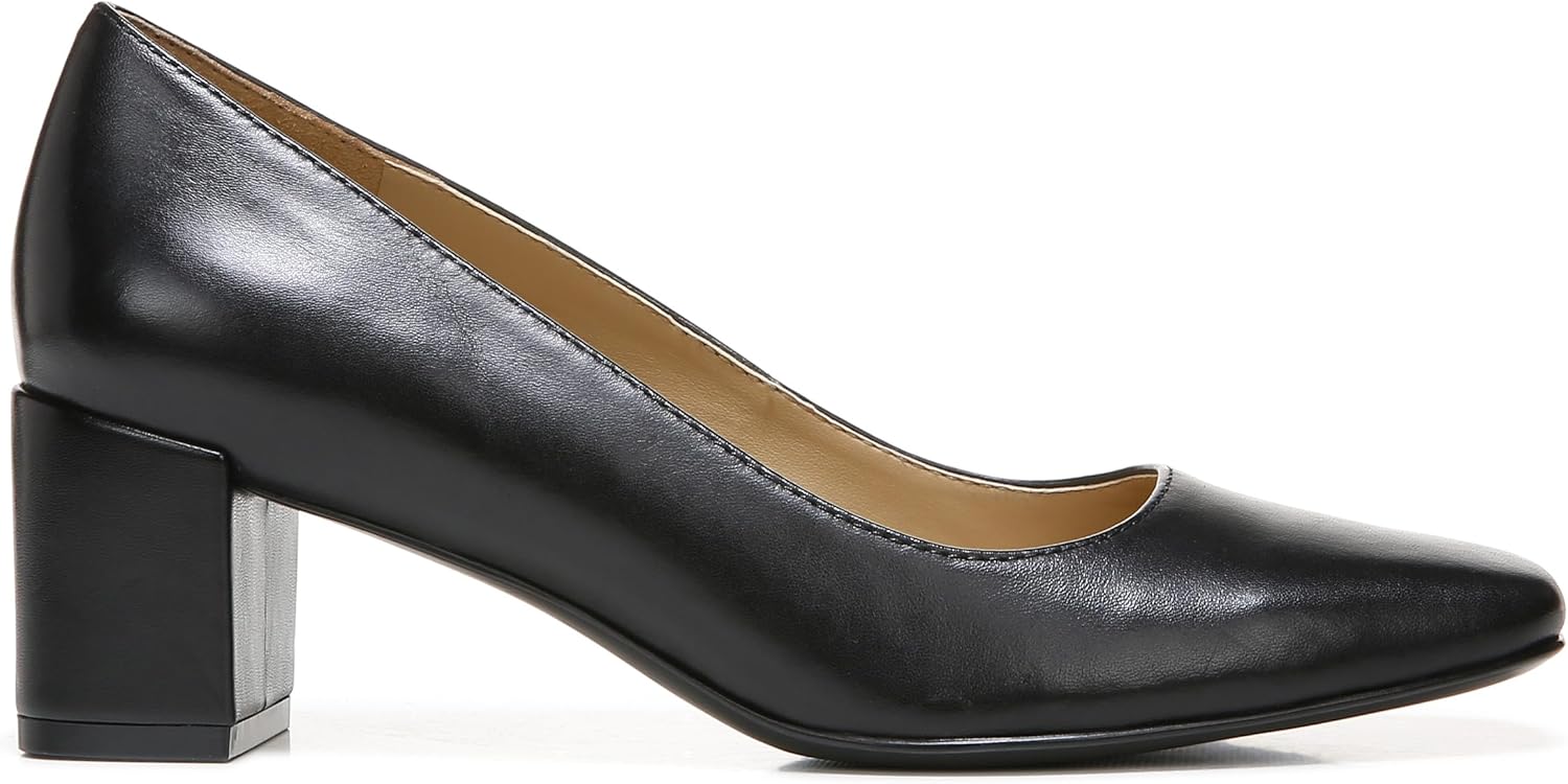 Classic pump silhouette with modern details like a squared-toe, interesting heel detail and Naturalizer contour Plus, provides all of the comfort you require. Combine that with a cushioned insole, lightweight components, flexible sole and breathable linings and you are ready to conquer your day.