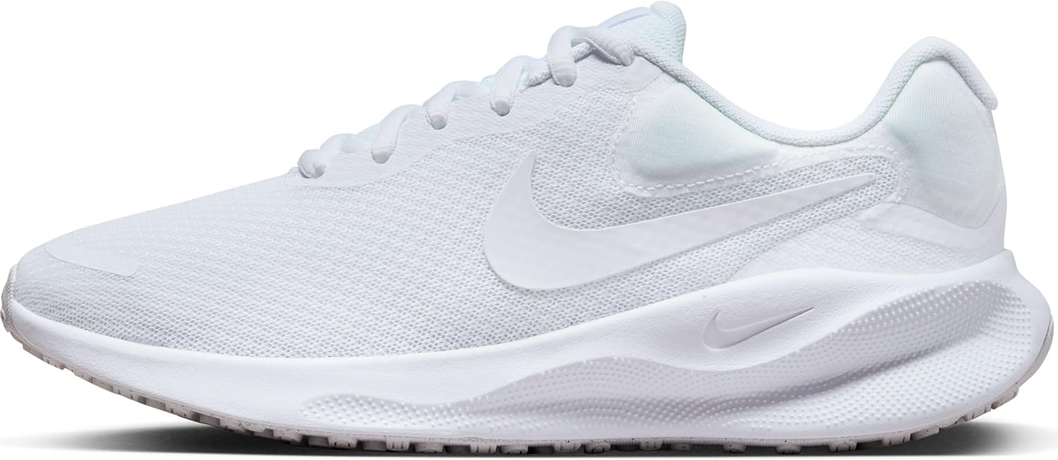 We’ve equipped the Revolution 7 with the soft cushioning and support you need to revolutionize your running. Stylish like never before, comfortable when your foot touches the ground, and perfect for following your pace – this evolution of one of the most popular models offers a smooth and fluid gait. Essential foam. The foam midsole provides a soft and cushioned feel. The shoe has more space in the forefoot area compared to the previous model, so your toes are not pinched or trapped. Soft to the touch. We added heel touches that are visible on the outside of the shoe. They feel soft and provide comfort in the Achilles tendon area. Contact points on the tongue ensure a natural fit when wearing the shoe. Reliable grip The generative traction pattern on the outsole, along with rubber studs, provides grip when ascending and descending.