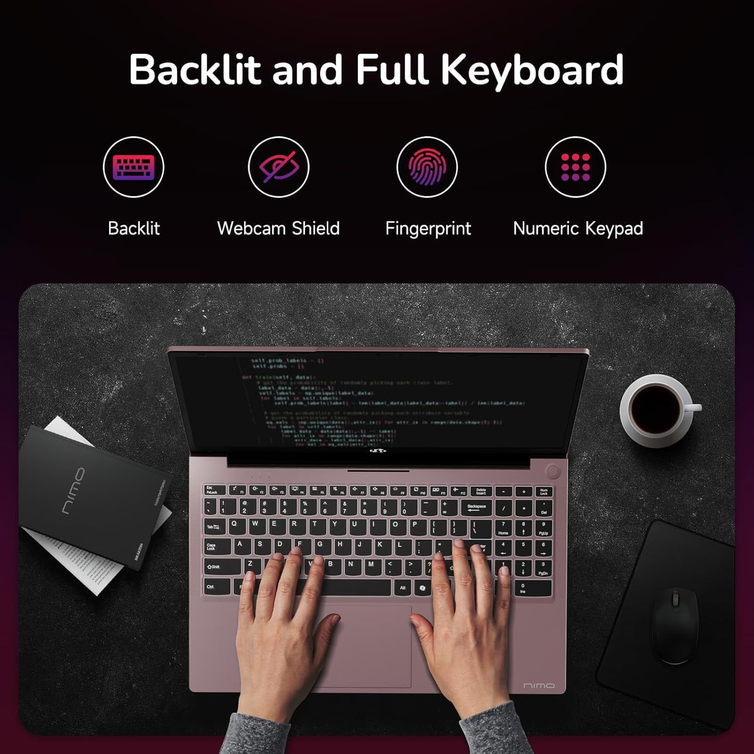 【Humanized Design】Our NIMO Laptop, Fingerprint Reader with built-in fingerprint sensor on the touchpad, there’s no need to type in your password every time-just a single touch is all it takes. Backlit keyboard for easy typing in dim or dark locations Touchpad with scroll and multitouch capabilities. Bright and evenly distributed backlit keys, easy typing in lower light environment. Ideal for studio work and office. Backlit has the option to turn on/off and adjust the brightness