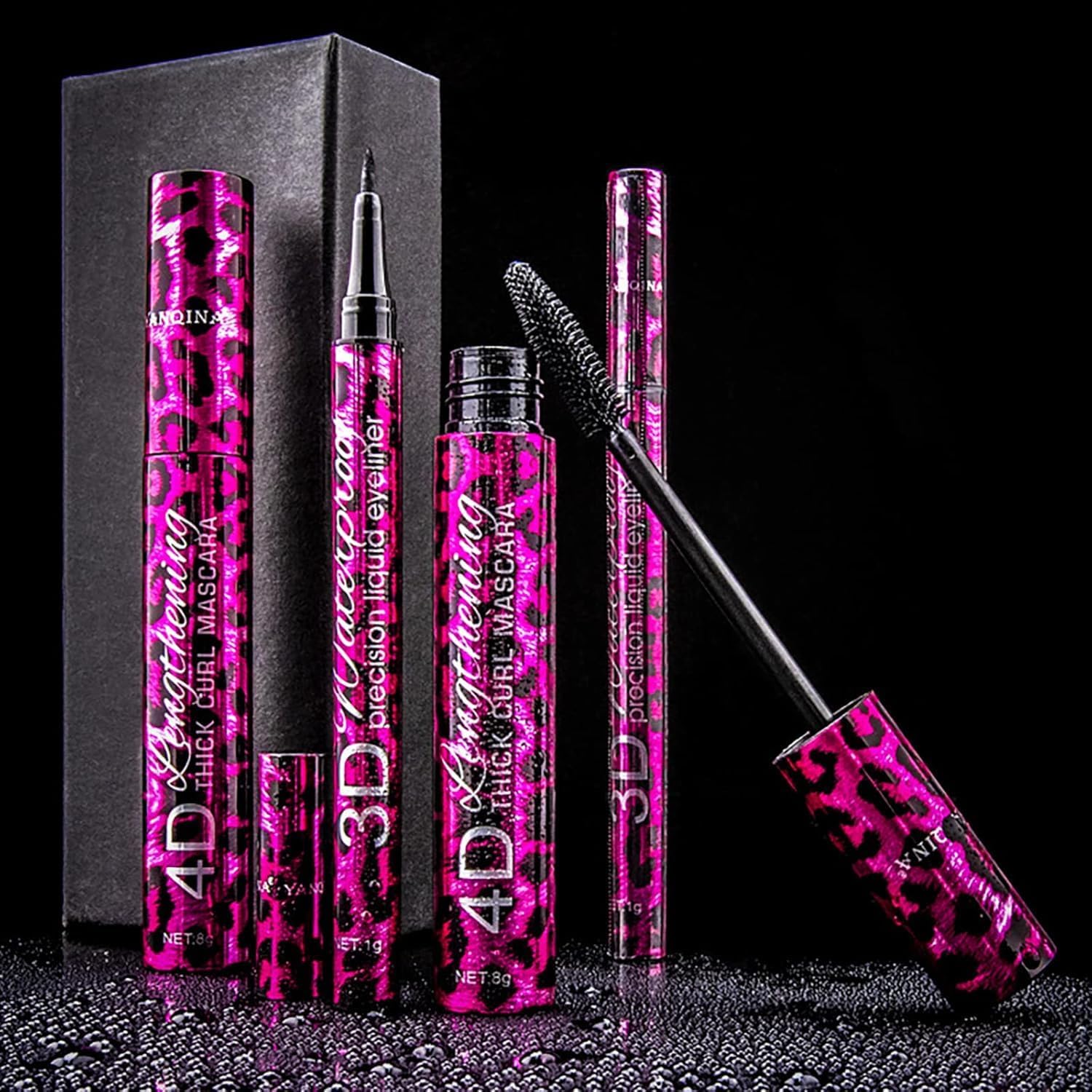 Noor Spark 2 In 1 4D Silk Fiber Eyelash Mascara and Long Lasting Liquid Eyeliner Set, Waterproof and No Smudge Eyeliner Pencil Eyes Makeup Kit, Good Gift for Women Girls (Black, Medium)