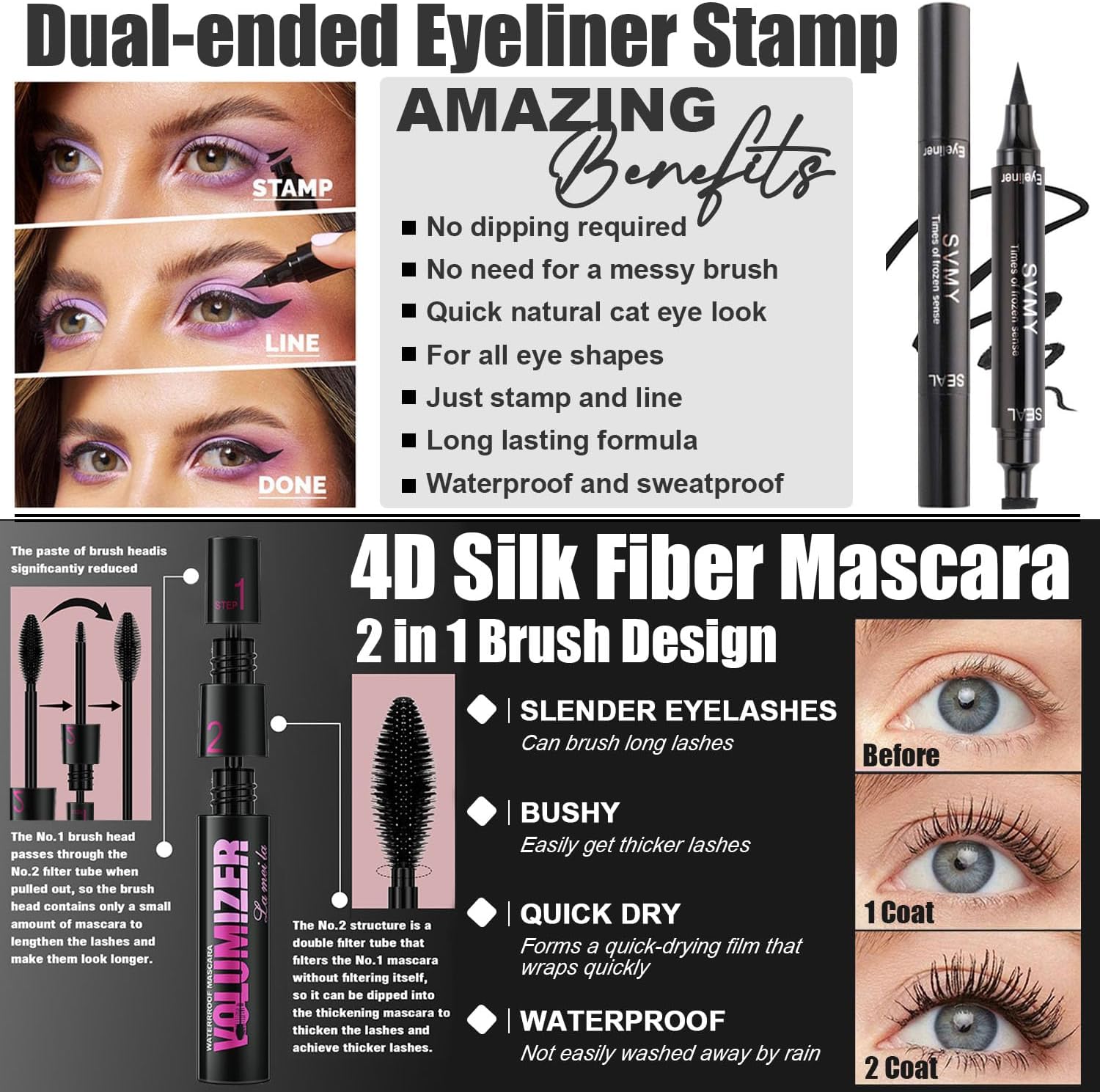 FULL KIT, FULL SIZE – The all-in-one makeup set including: 1 x 12 colors eyeshadow palette, 1 x Beige liquid foundation, 1 x Nude liquid foundation,1 x volumizing & lengthening mascara, 1 x contour stick, 1 x three shades of eyebrow powder, 1 x6 colors liquid lipstick set, 1 x eyebrow soap, 1 x eyeliner stamp, 1 x primer, 1 x makeup brush, 2 x makeup sponge, 1 x cosmetic bag, making it easy for a beginner as well as a pro to enjoy.