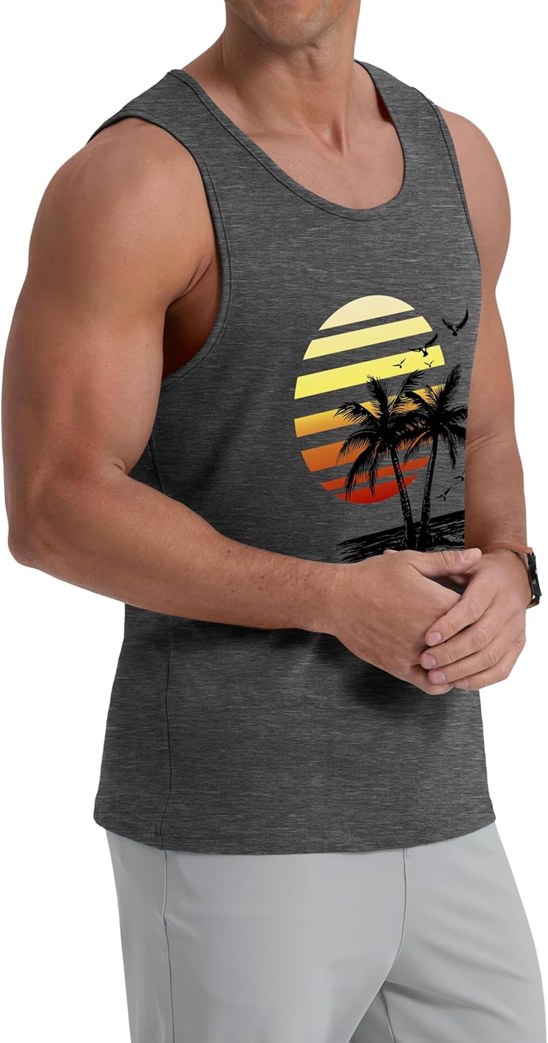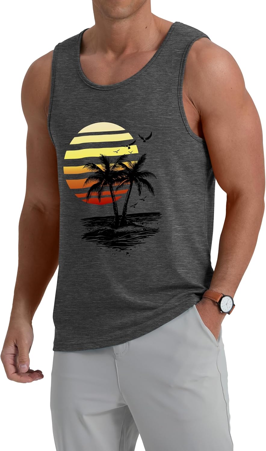 Summer Tropical Palm Graphic Tank Tops Scoop Neck Cuff Out Boxing Sleeveless Shirt