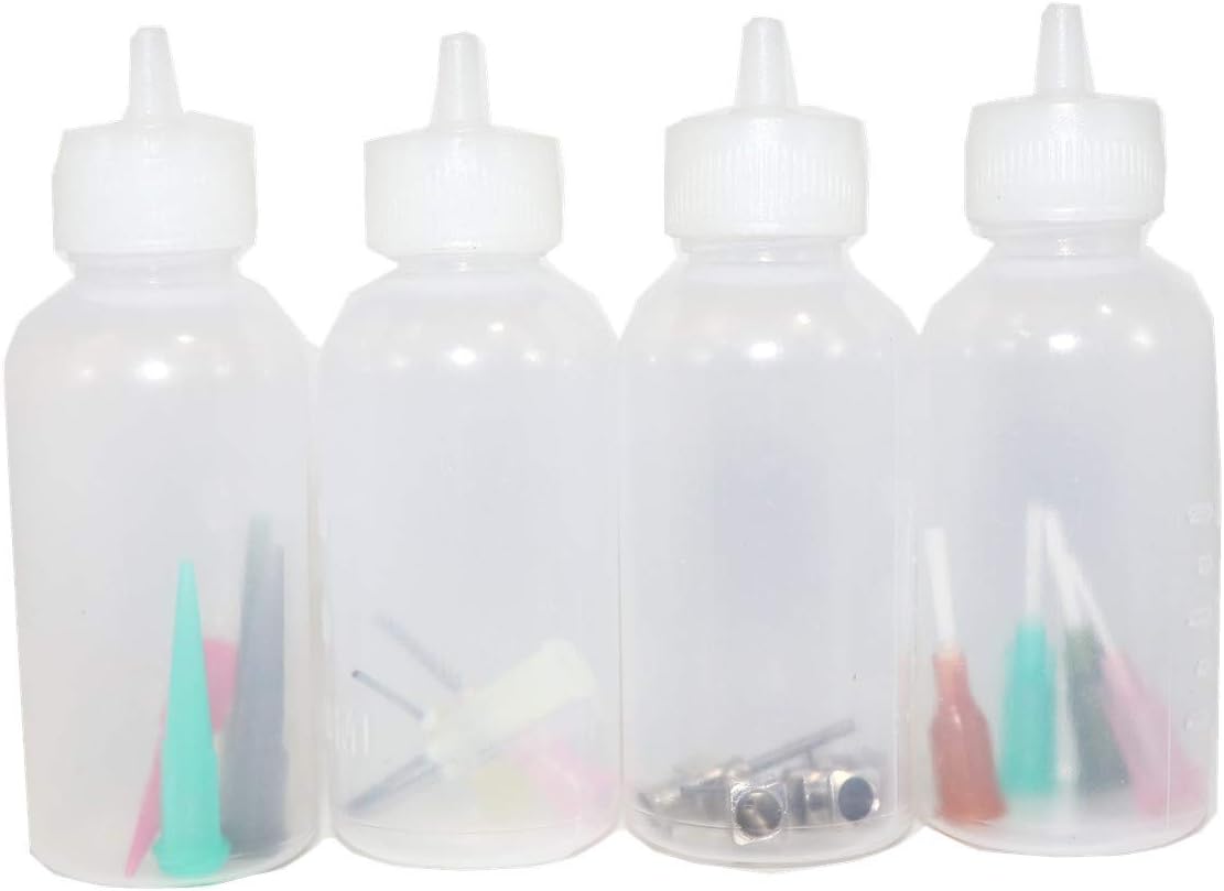 Package included 4 pcs 1oz. plastic bottles with caps and 16 pcs diffferent size fine applicator tips