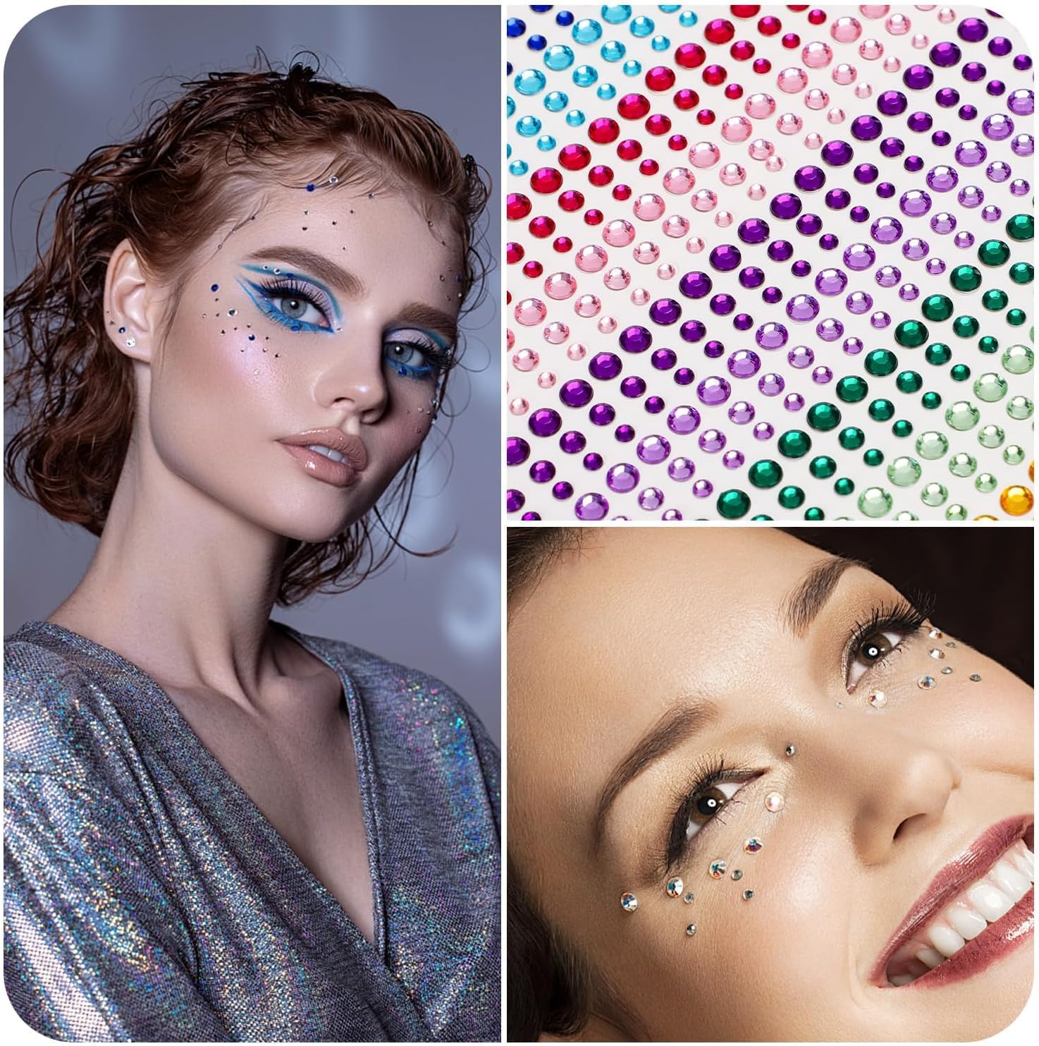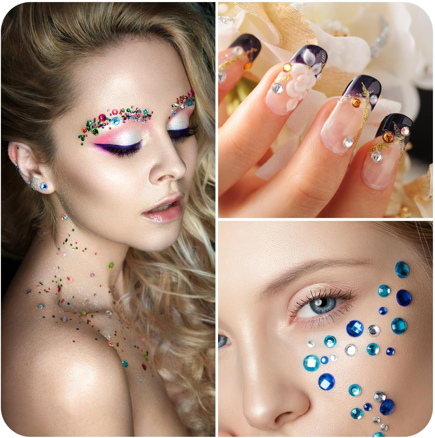 【Wide Application】These self-adhesive face gem stickers can be stuck on eyes, face, hair, body and nails as decoration, and can also be used as diy jewellery to stick on mobile phones, bags, home decorations, artworks.
