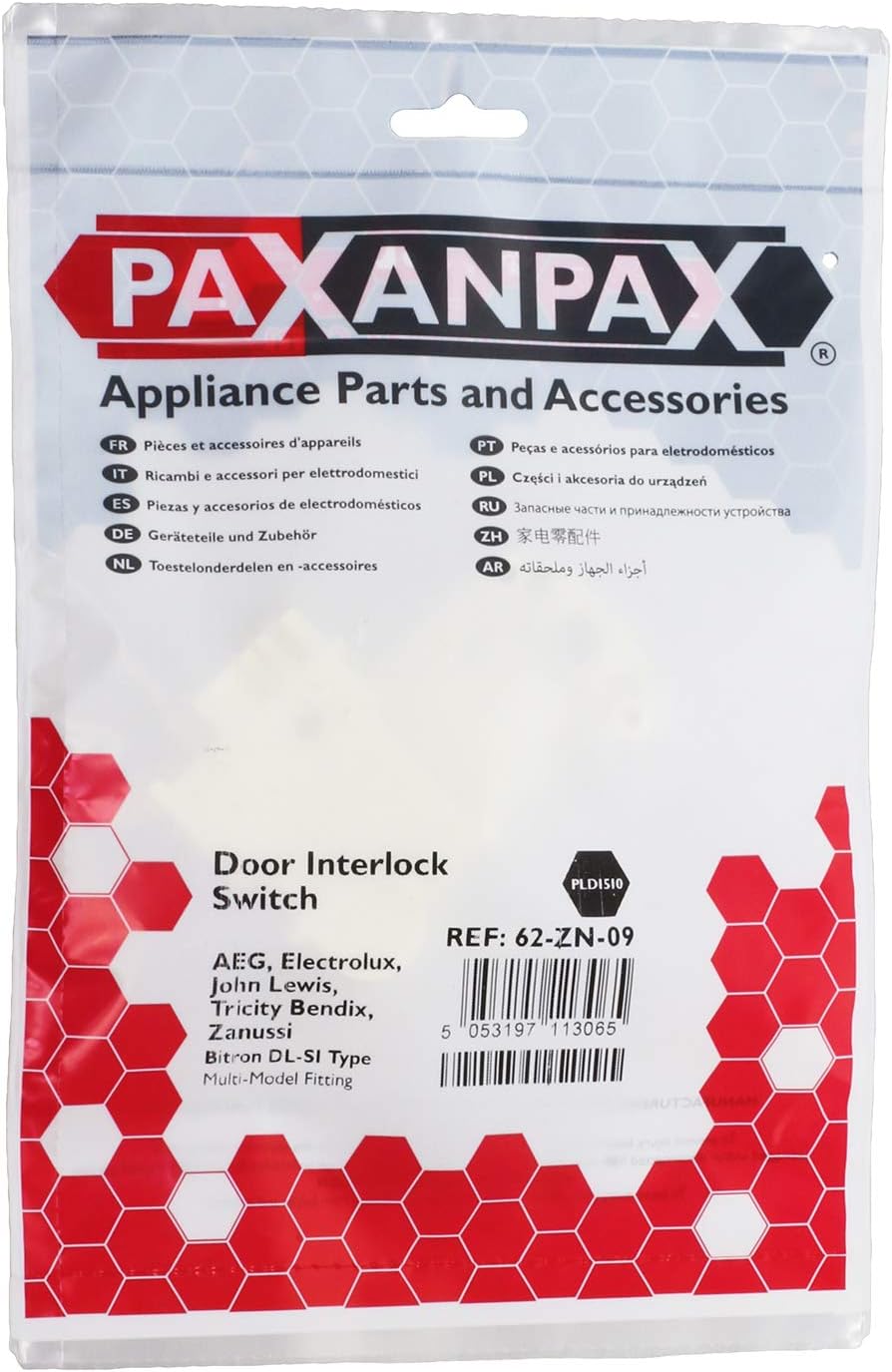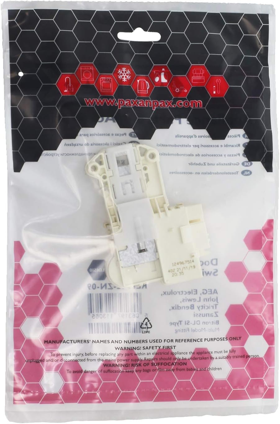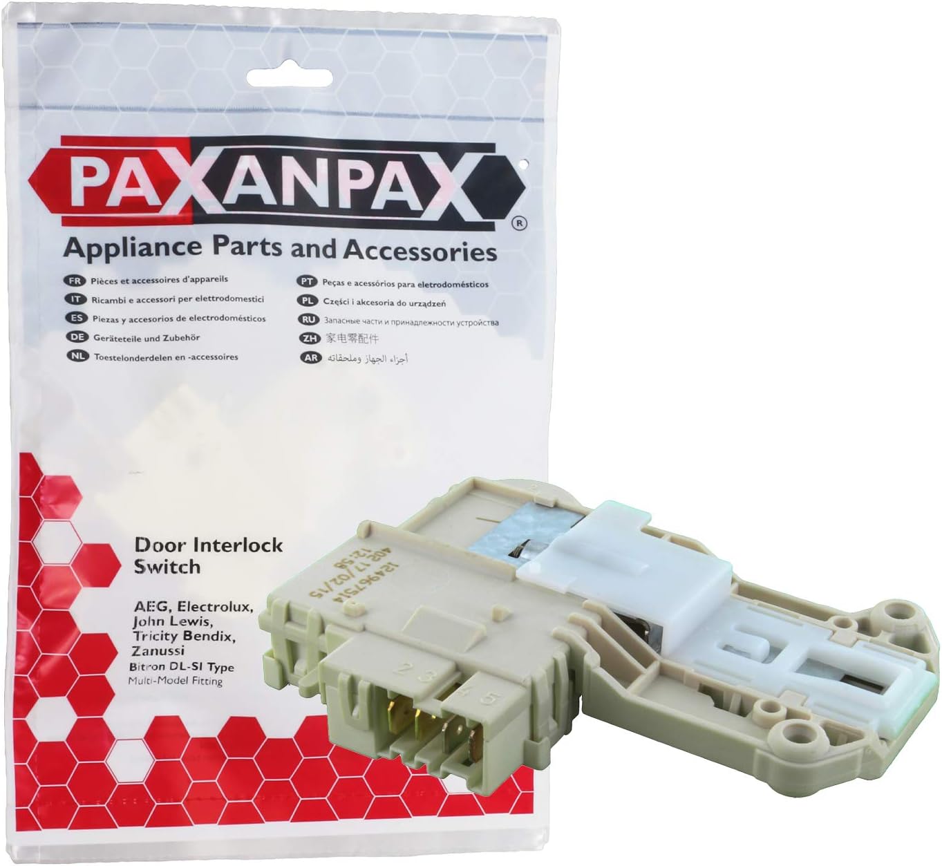 Paxanpax PLD1510 Compatible 4-Tag Bitron DL-S1 Delaying Device Door Interlock Switch. Fits AEG Lavamat 72537-72738; Electrolux, John Lewis, Tricity Bendix, Zanussi. Designed for to have a long life span and meet or exceed the original manufacturers specifications. Paxanpax product code : PLD1510. Equivalent commercial reference : 3792030425. Replacement door switch for your Washing Machine.