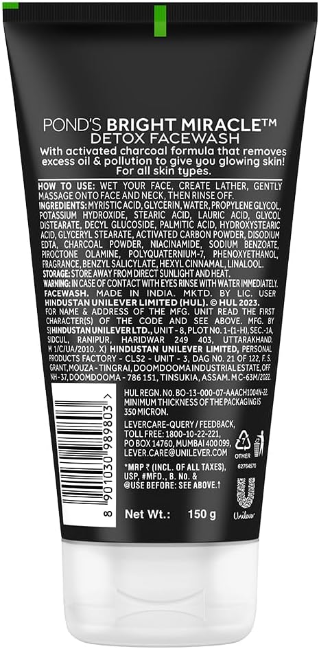 SUITABLE FOR ALL SKIN TYPES: The Ponds Bright Miracle Detox Facewash is suitable for all skin types. It is the best face wash for oily skin as it deeply cleanses and removes excess oil.
