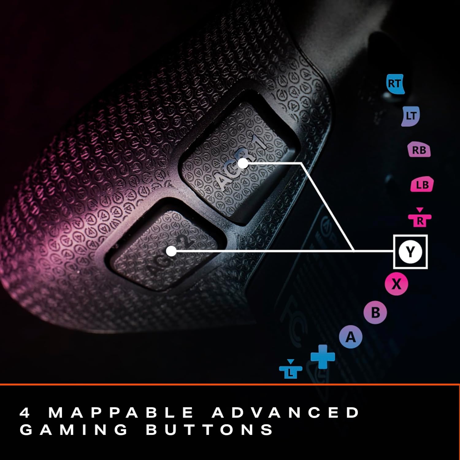 ألعاب غامرة: توفر المحركات المزدوجة ومشغلات النبض تفاصيل لمس نابضة بالحياة في ألعابك، بينما يوفر مقبس ستيريو 3.5 ملم صوتًا واضحًا وديناميكيًا