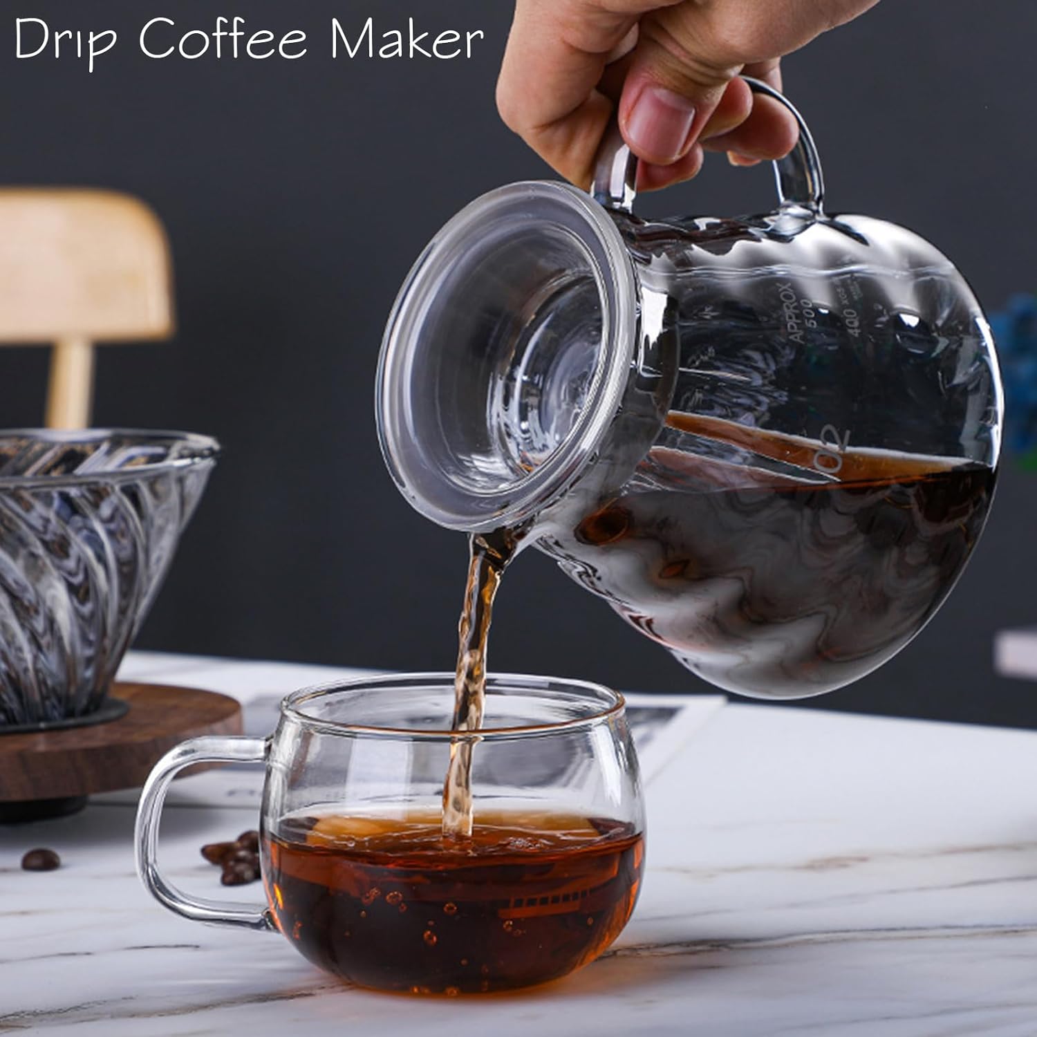 【POUR OVER COFFEE MAKER SAFE MATERIAL】:Both the dripper and the coffee pot are made of borosilicate glass, which is odor-free, BPA-free, not easy to residue, and easy to clean. The filter paper is made from natural wood pulp without any bleaching.