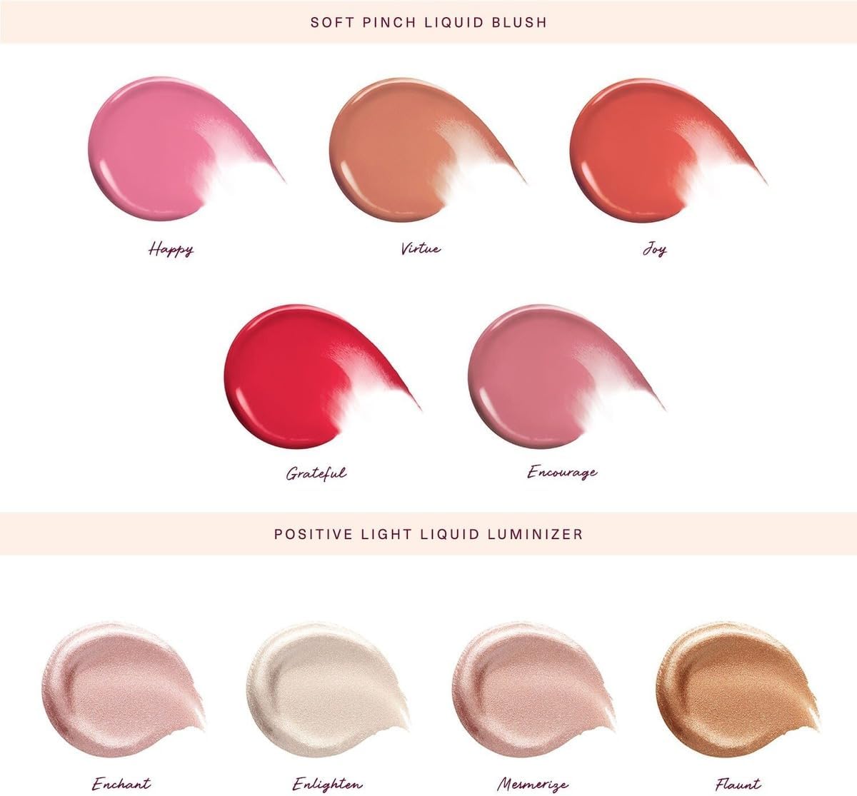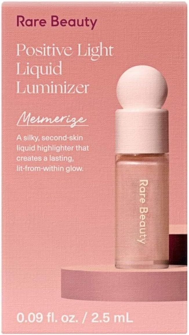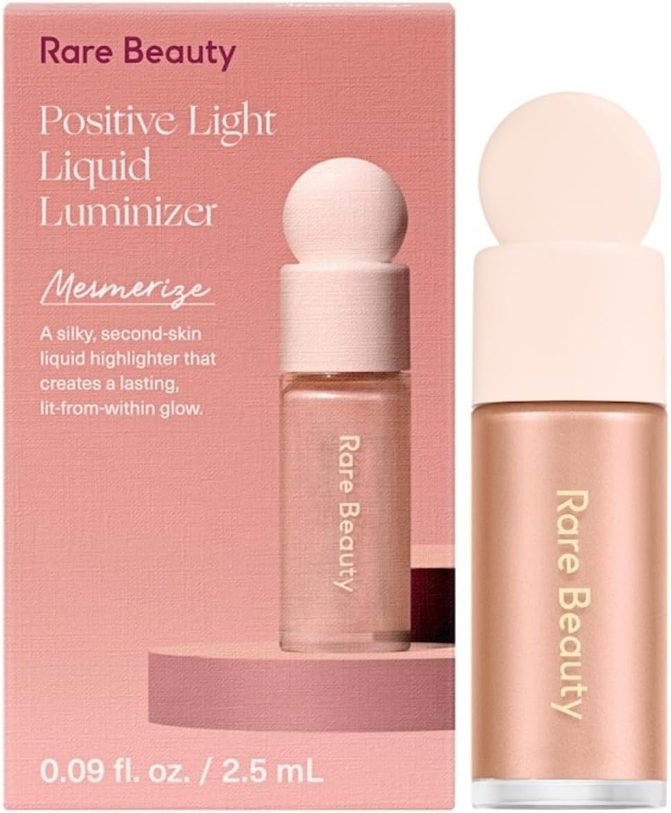 Make the skin dewy and luminous with the Rare Beauty Mini Positive Light Liquid Luminizer, a liquid highlighter that leaves an instant dewy shimmer. This mini version of the brand’s iconic radiance-enhancing formula delivers the same buildable glow that lasts all day. Loaded with light-catching pearls that can transform any look from a soft sheen to a bold pop with just a few swipes, this Mini Positive Light Liquid Luminizer is perfect for full glam and day-to-day wear. It also contains a botanical blend that helps soothe the skin. With a near-weightless formula that wears like second skin and blends without any creasing, this liquid highlighter from Rare Beauty can be layered with other liquid, cream or powder formulas for a beautiful complexion