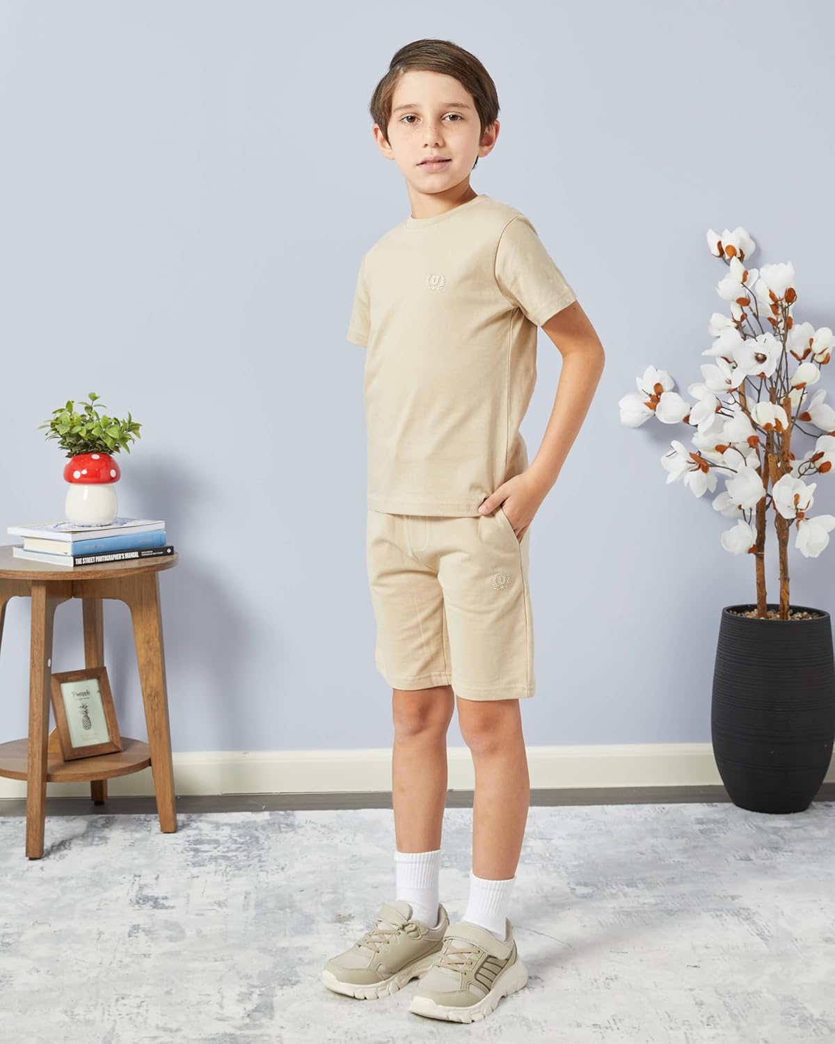 REDTAG Boys Beige And Charcoal Shirt Set (Pack Of 2), Beige