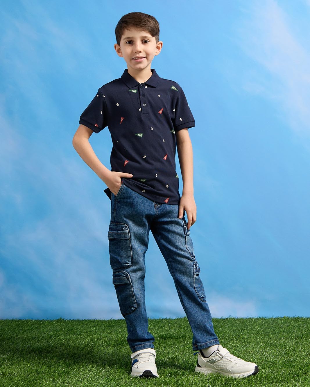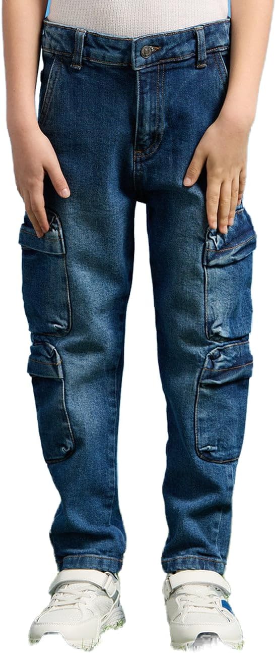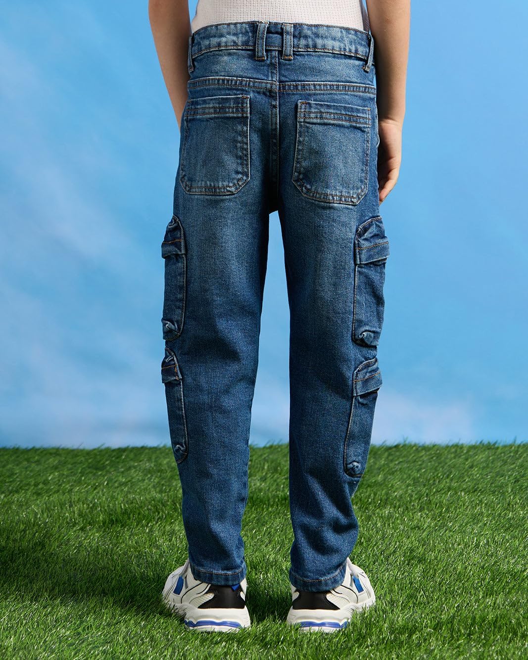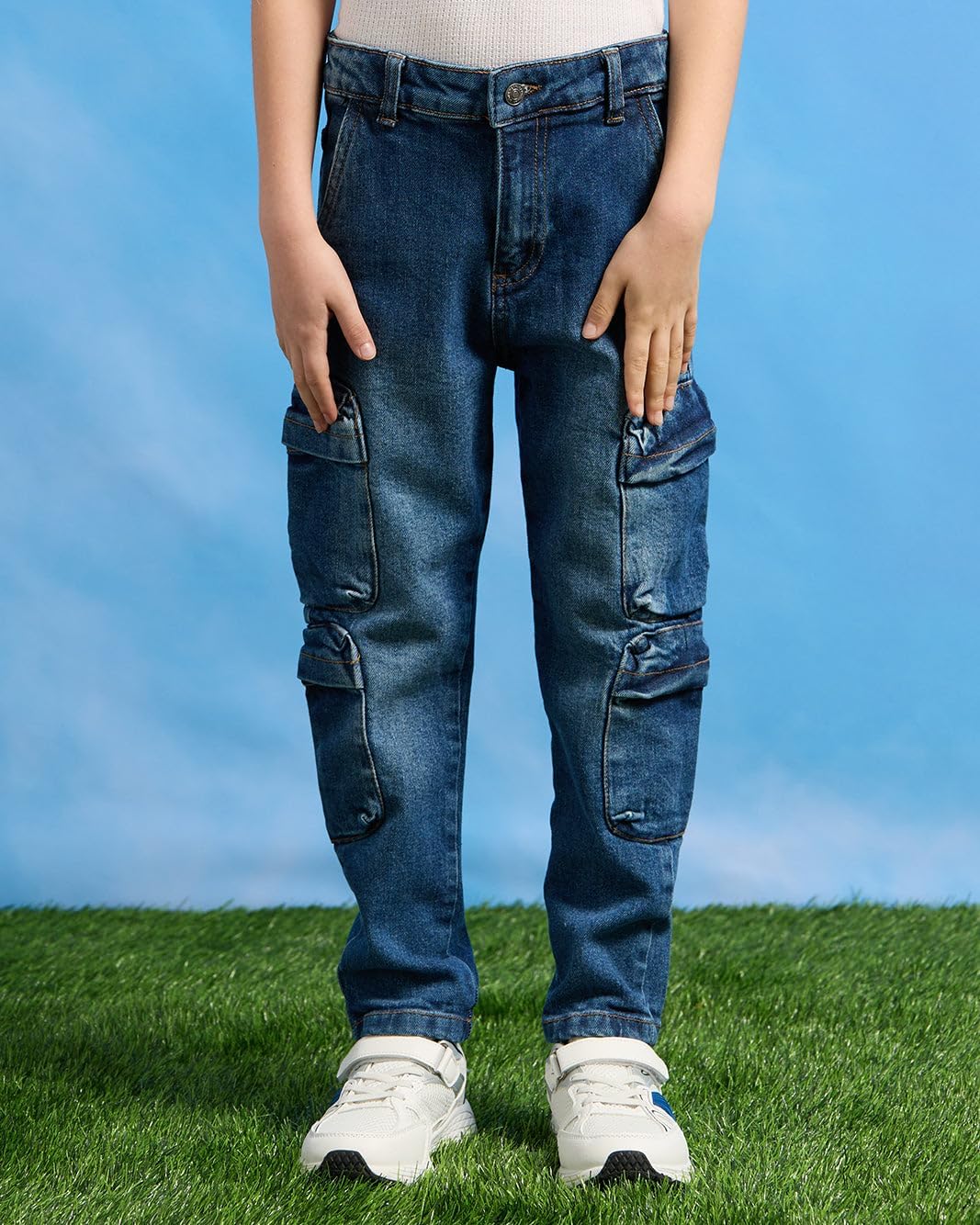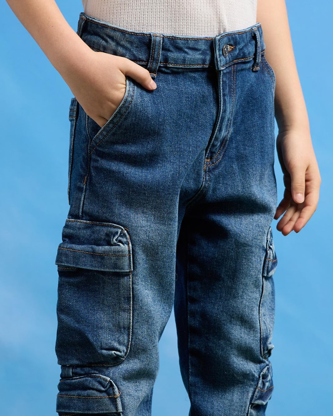Trendy and practical jeans featuring cargo pockets for extra storage. It is a perfect blend of style and functionality.