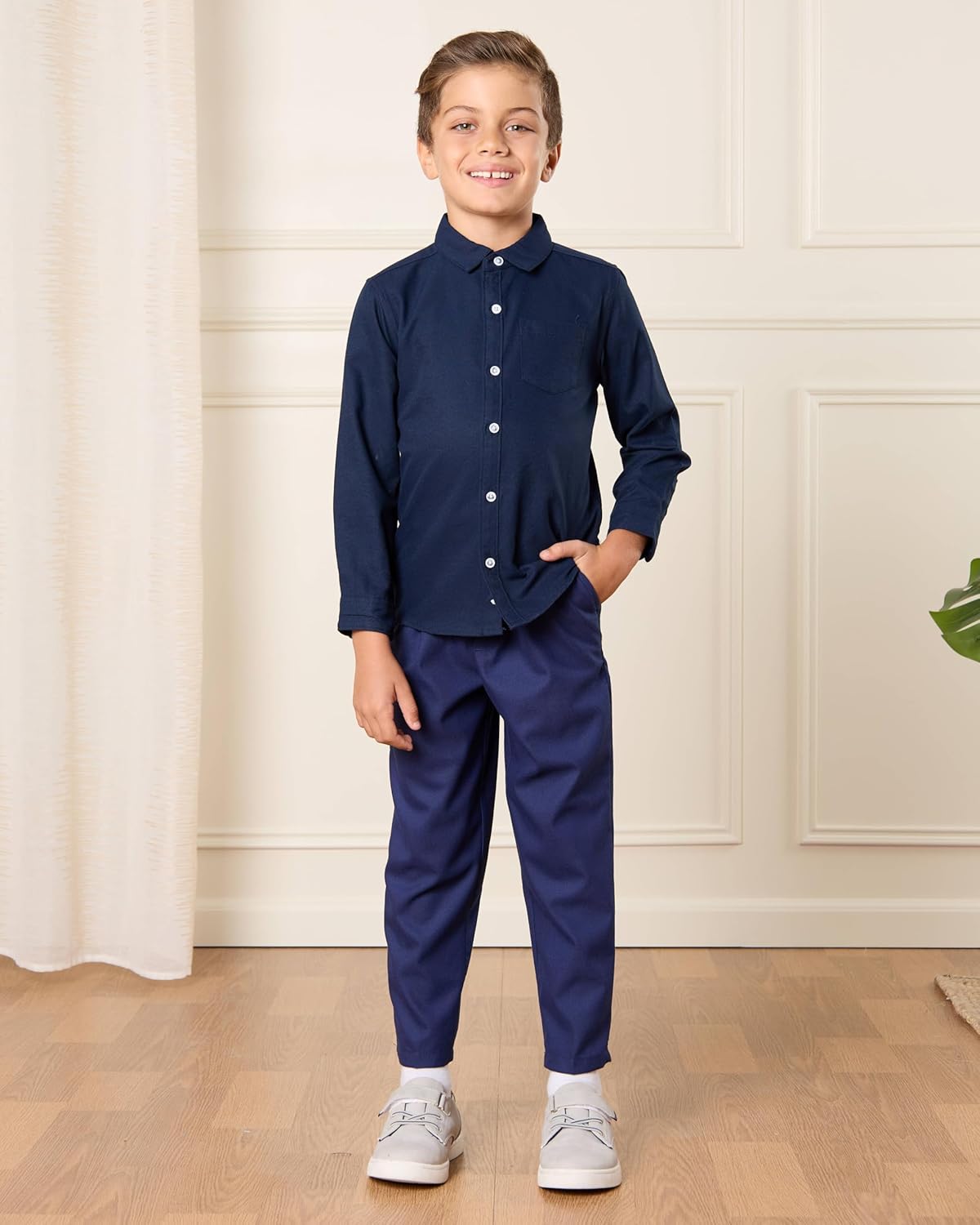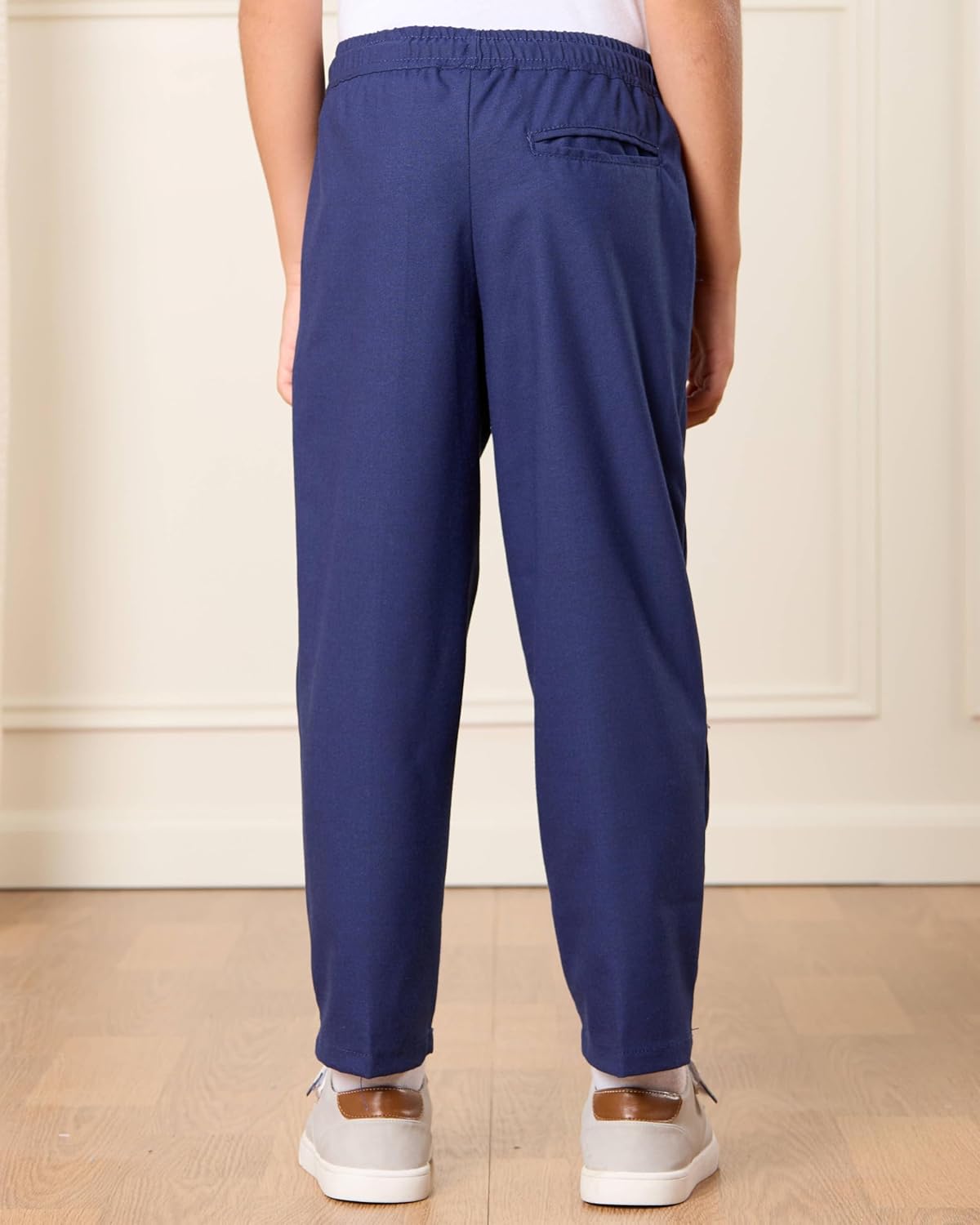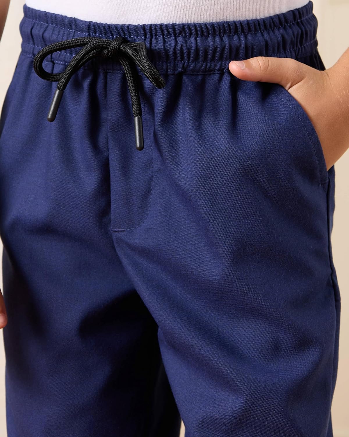 A pair of pull-on trousers for boys with an easy elastic waistband for all-day comfort. Simple to wear and move in, ideal for school or casual outings.