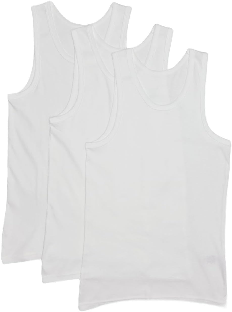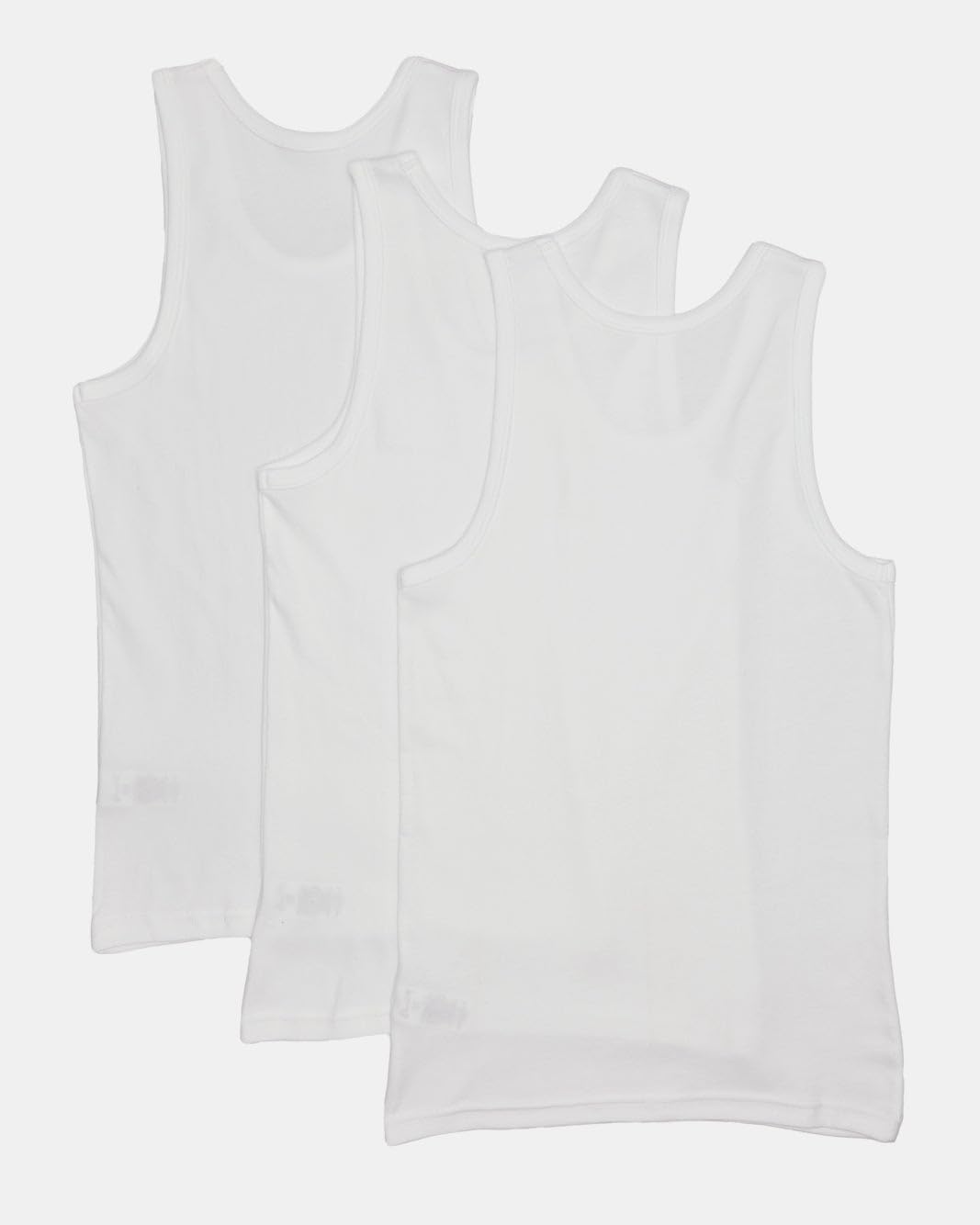 A set of 3 comfortable white undershirts for senior boys. Made from cotton, suitable to wear daily.