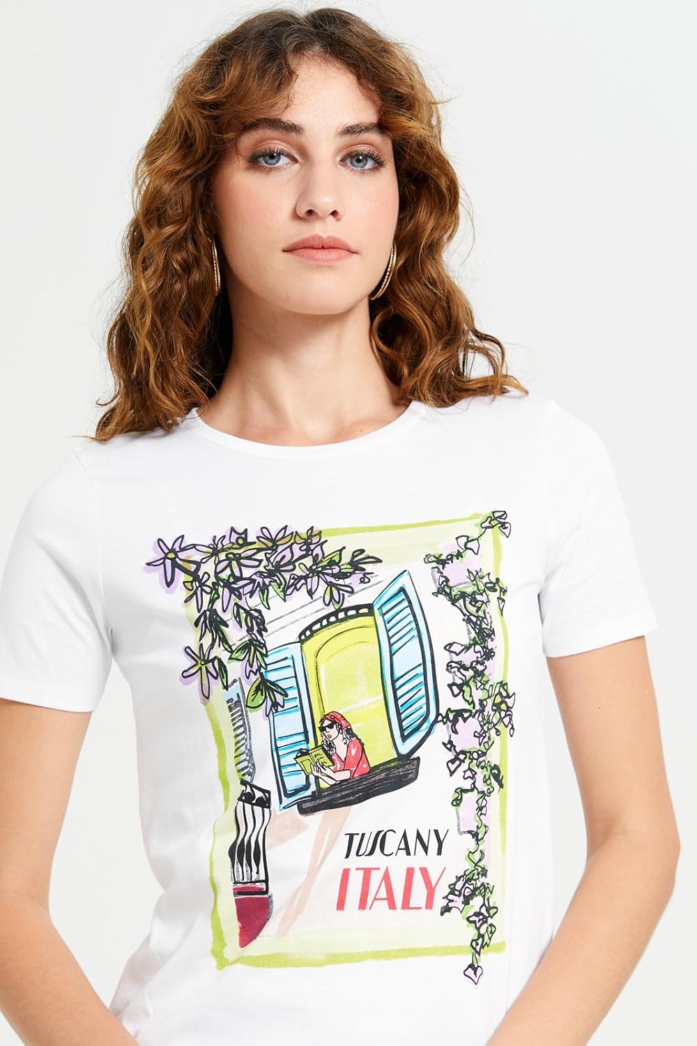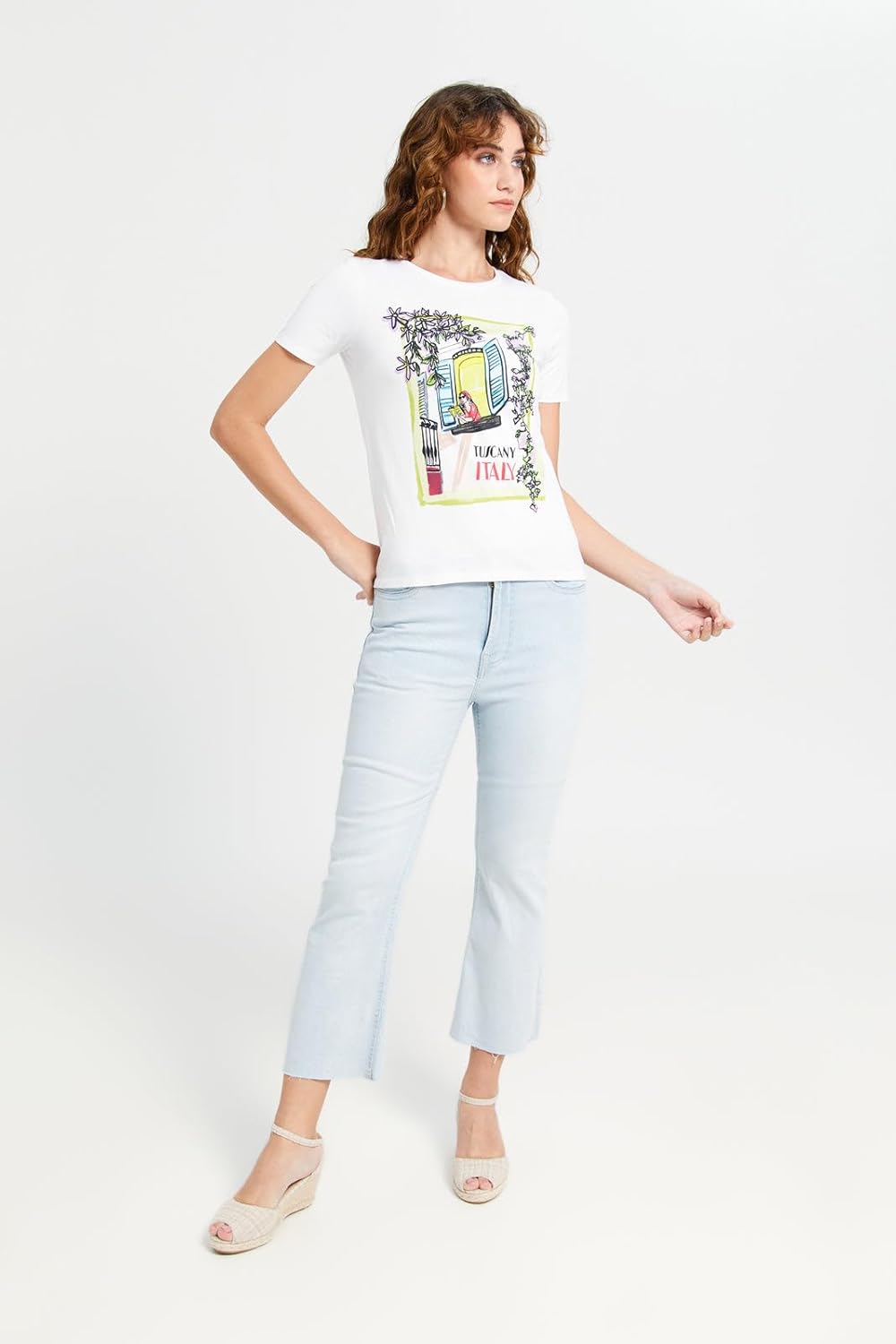 Crafted from soft and buttery cotton, this T-shirt offers all-day comfort. The relaxed fit and lightweight fabric make it perfect for pairing with jeans, shorts, or leggings.