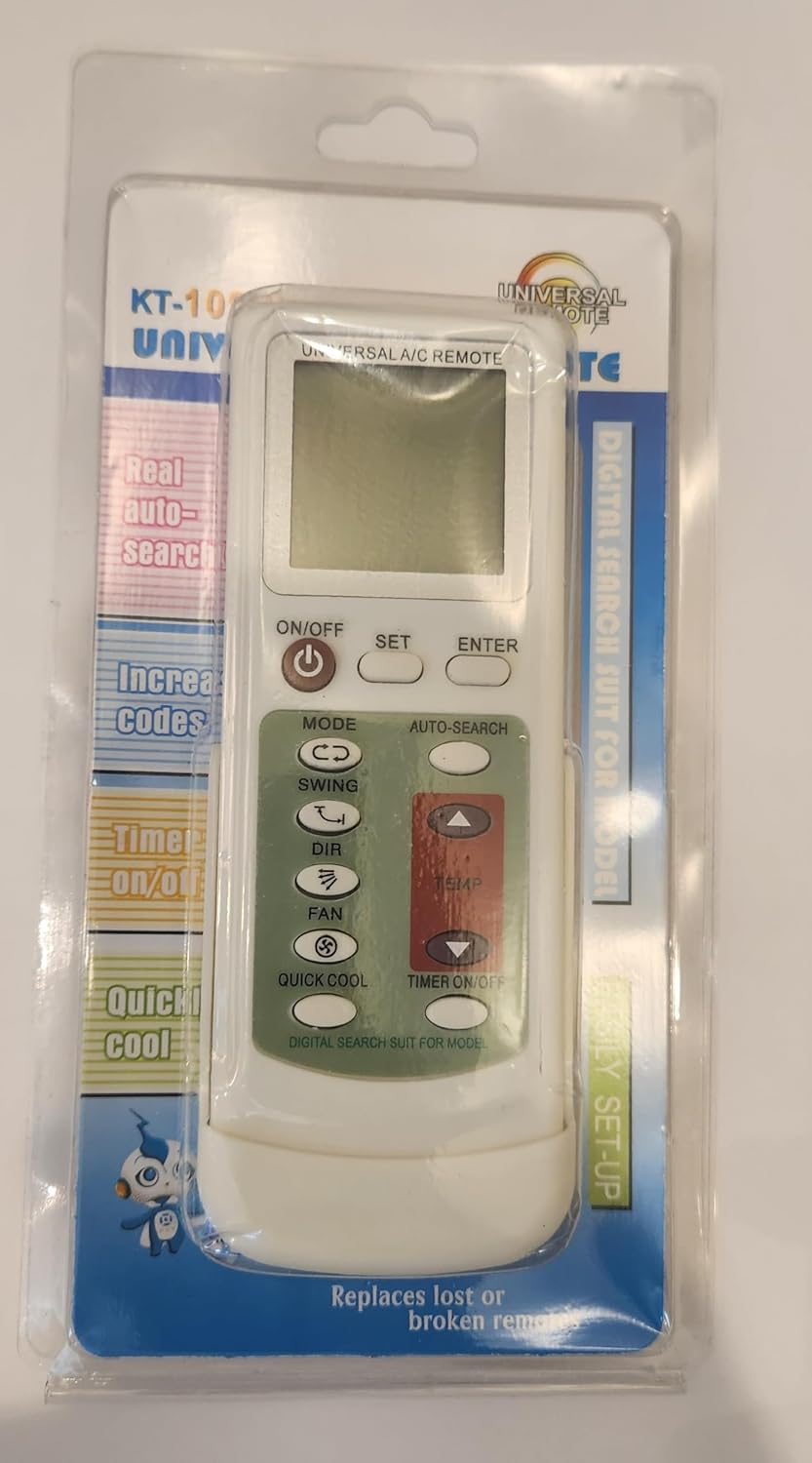 remote control for all air conditioners, white color with base, powered by two AAA batteries (not included)