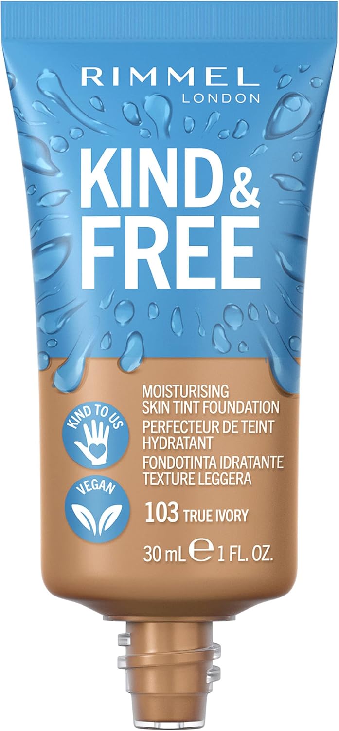•Introducing Rimmel London Kind & Free Skin Tint natural foundation •Perfecting the skin with light-medium coverage for a beautiful, natural finish, the vegan formula is cruelty-free, so you can feel as good as you look •Infused with an antioxidant vitamin complex (E & B5) and aloe vera, this foundation offers your skin natural coverage combined with the moisturisation it needs for a fresh, healthy-looking glow •It is free from mineral oil, animal-derived ingredients and perfume •The packaging is also made with recycled materials* which is kinder to the environment *PCR total pack 12% (including pack) & 23% excluding cap