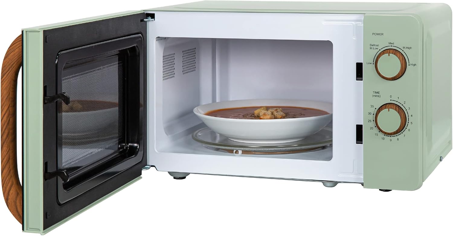 SCANDI INSPIRED Inspired by the clean lines and natural textures of Scandinavian design, the RHMM713 is the perfect everyday microwave, ideal for cooking a variety of meals in minutes. The wood effect accents will give your kitchen a chic and sophisticated look. 700W POWER This attractive appliance is simple and easy to use with its 700 watts of microwave power, providing you quick and convenient cooking in your home. This microwave fits a round dinner plate up to 10.5″ (26.5cm). 5 POWER LEVELS This microwave boasts 5 power levels to tailor the cooking to suit your recipe. Simply turn the power dial to select your desired level DEFROST SETTING For added functionality, there’s also a defrost setting, saving you time so that you can heat meals straight from the freezer. EASY TO USE To use the micorwave, simply select a power level and the cooking time required by turning the dials. The internal microwave light lets you know that cooking is in progress. When the cooking cycle has finished the microwave has a handy ringer function that will sound to alert you. And that’s it! Cooking has never been so easy.