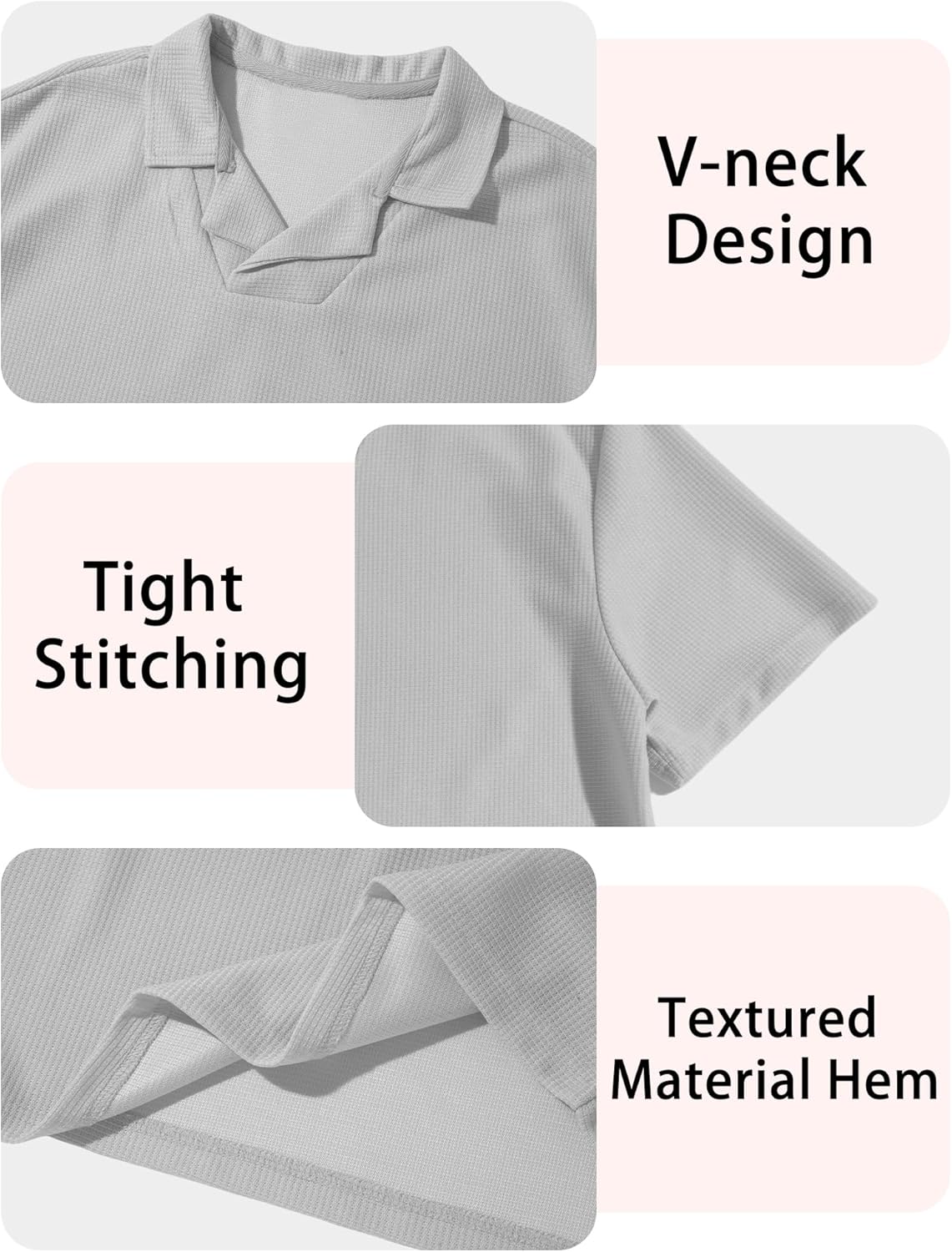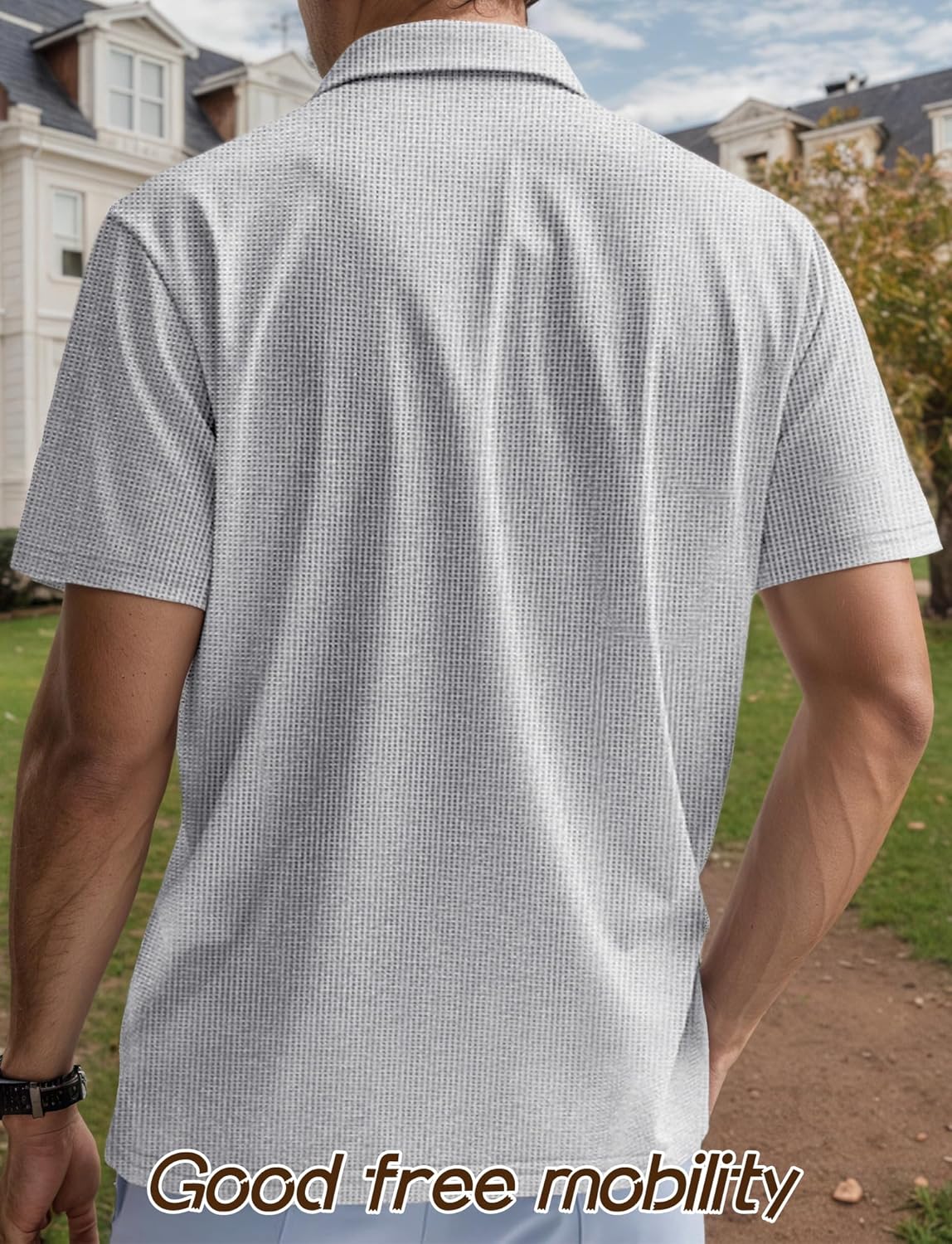 SEAUR Men’s Waffle Polo Shirts Casual Shorts Sleeve Summer Tops Plain Golf Tennis Tee Textured Regular Fit T-Shirts