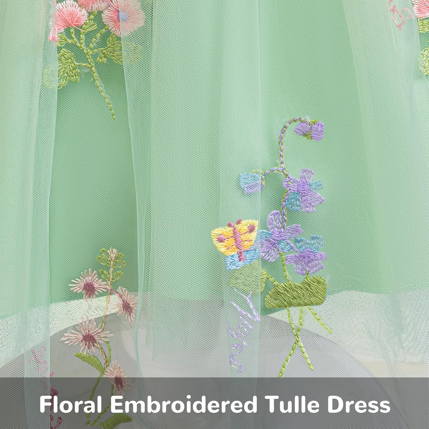 This toddler tulle dress combines elegance and comfort with its floral-embroidered tutu skirt and breathable polyester construction.