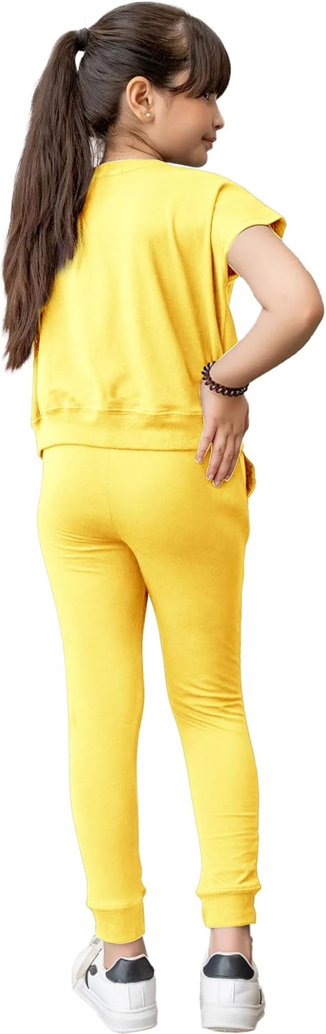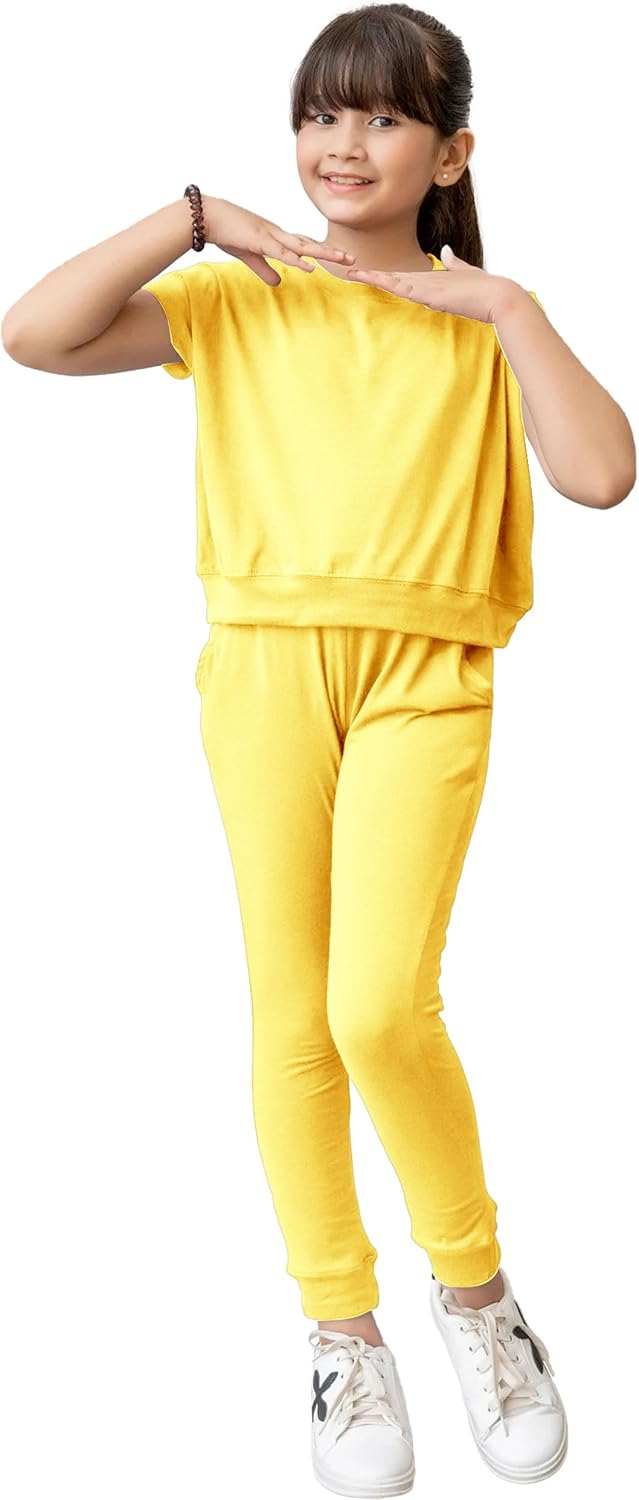STYLISH COMFORT FOR ACTIVE GIRLS: Give your little one the perfect blend of comfort and style with this trendy T-shirt top and legging set. Designed to offer ease of movement, this outfit is ideal for all-day wear, whether playing outdoors or relaxing at home. VERSATILE COLOR OPTIONS: Available in a range of vibrant colors including Black, Baby Pink, Yellow, Red, and Sky Blue, this set will suit every personality. Each color is fresh and fun, perfect for mixing and matching to create playful looks. FLEXIBLE SIZING FOR GROWING KIDS: Tailored for children aged 5-6 Years, 7-8 Years, 9-10 Years, 11-12 Years, and 13-14 Years, this set ensures a perfect fit with room to grow. The stretchy fabric allows for flexibility, keeping your child comfortable through every activity. PREMIUM MATERIAL BLEND: Made from 93% Cotton and 7% Lycra, this set is soft on the skin while offering the right amount of stretch. The high-quality cotton ensures breathability and moisture absorption, making it ideal for the warmer months, while the Lycra adds durability and flexibility. EASY TO MAINTAIN: Parents will love how easy it is to care for this set. It’s machine washable and designed to retain its shape and color even after many washes, making it a durable and reliable choice for everyday wear.