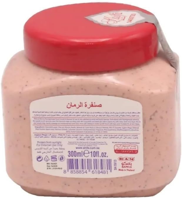 Shiva Pomegranate Face & Body Scrub contains a scrub and cleanser, which gently exfoliates the face and removes impurities, makeup and dead skin cells very strongly, leaving the skin clean and fresh at the same time. This gentle scrub removes the heaviest makeup along with skin impurities and dead skin cells to leave you with clean, fresh and clear skin. It is a two-in-one facial scrub and facial cleanser. Contains 300 ml of scrub