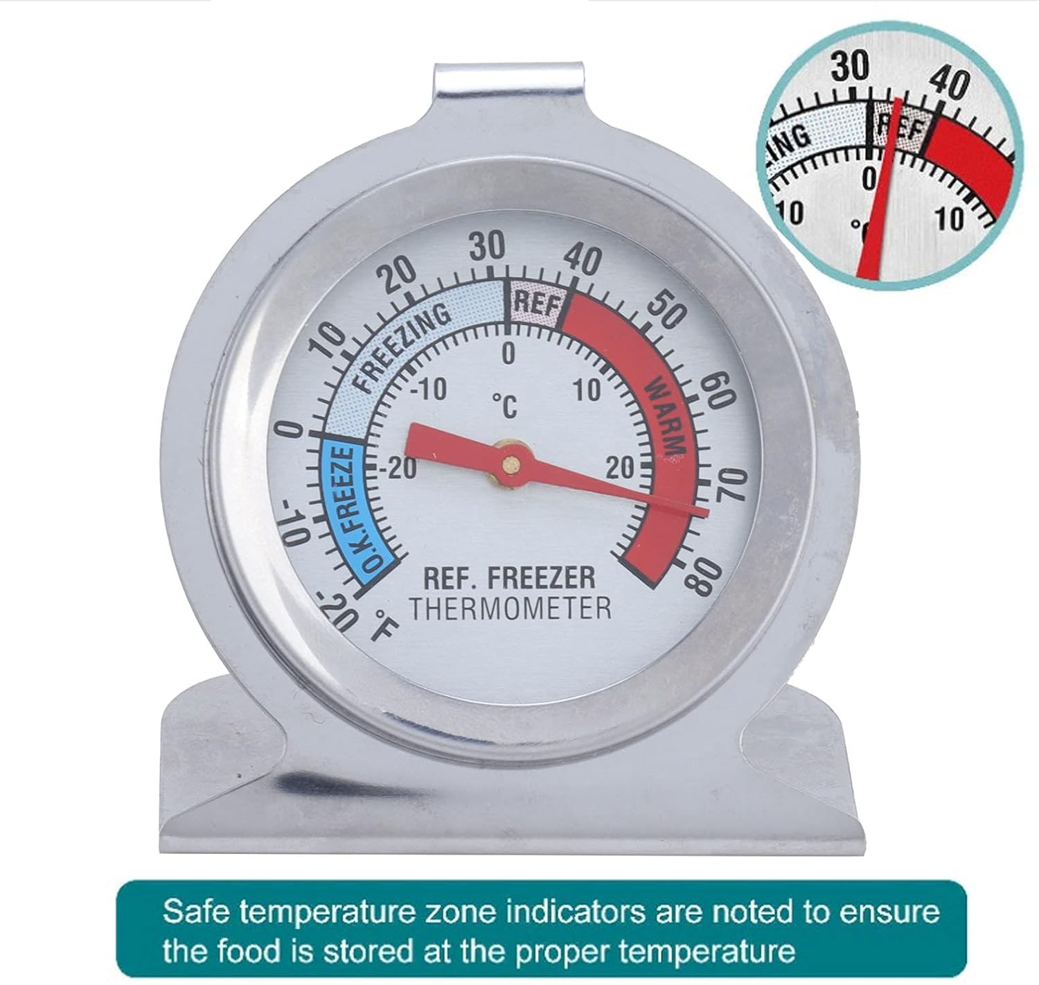 Feature: 1. Simple installation, and its unique design can make it easy to install or stand upright on the base, making it more convenient for you to measure. 2. Professional standards, it is designed for high‑quality professional kitchens, suitable for any home or commercial space, allowing you to accurately grasp the refrigeration situation. 3. Durable stainless steel housing, it is sturdy and durable, provides strength and corrosion resistance, can protect important components and extend service life. 4. Easy to clean, it is designed with a smooth surface, there is no gap area that is difficult to clean, so that your cleaning process is no longer cumbersome. 5. Shatter‑resistant dial, its dial is sturdy and reliable, it will not be easily broken or damaged, so you can use it with confidence, and it is very safe and reliable. Specification: Item Type: Refrigerator Thermometer Material: Stainless Steel Usage: Hanging, Standing Features: Easy to Use, Easy to Clean Weight: Approx. 43g / 1.5oz Color: Silver Package List: 1 x Refrigerator Thermometer.