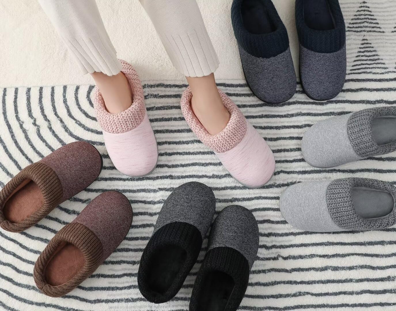 SincereWay Women’s Coral Fleece Lined Knitted Fabric Slipper