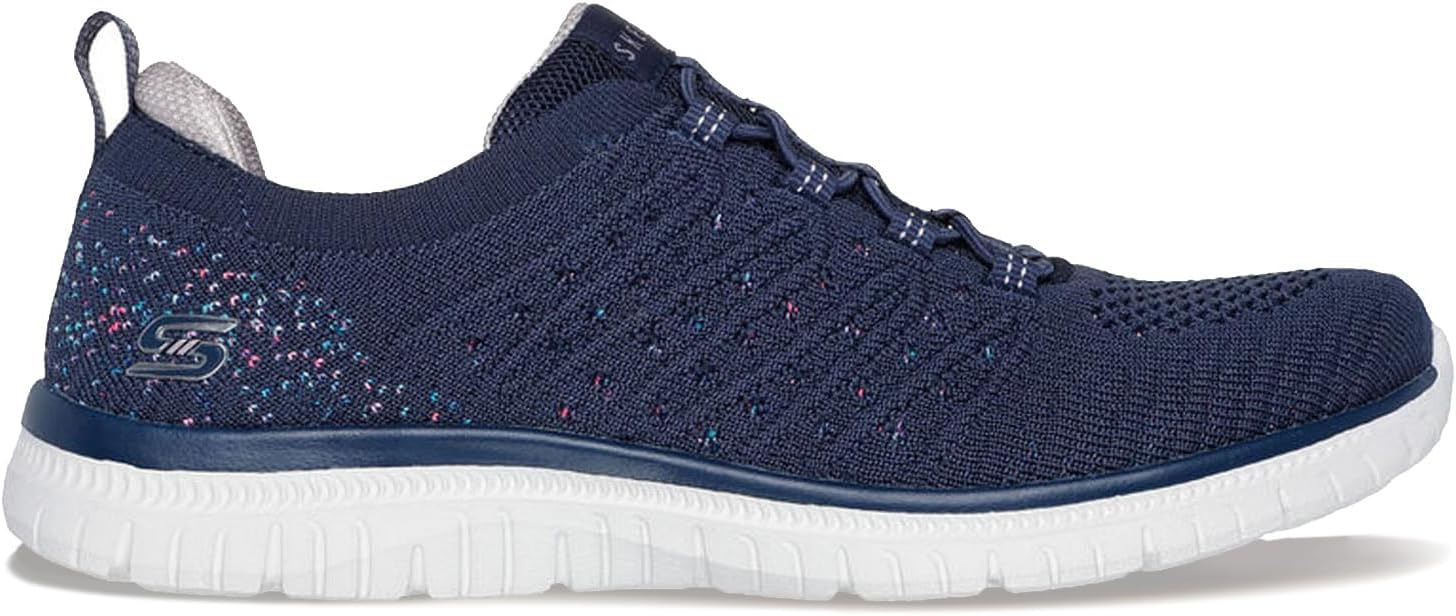 Enjoy your walks in easy-wearing comfort with Skechers Virtue. This sporty design features an engineered knit upper with trickle-down color detailing at the heel, a stretch-lace front and a cushioned Skecher Memory Foam insole.