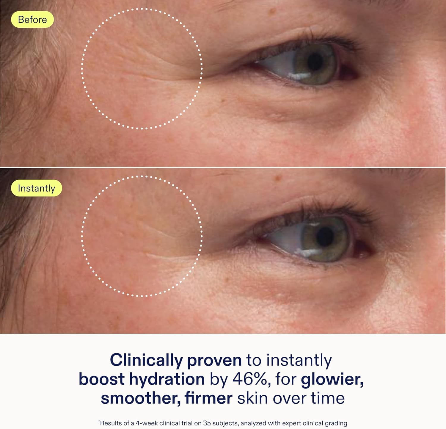 CLINICAL RESULTS – Clinically proven to deliver glowier (+26%), smoother (+29%), and firmer (+12%) skin after 4 weeks. 100% of users had immediate barrier function improvement, showed improved moisture retention & said skin feels smoother & hydrated.