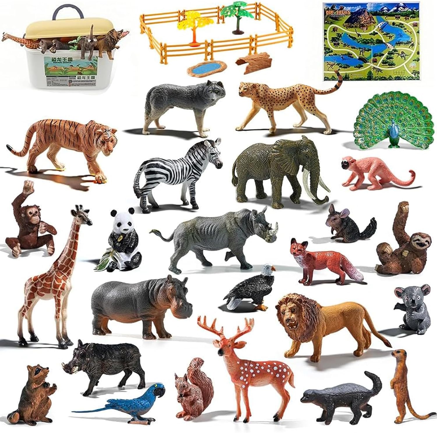 🎅 SAFARI ANIMALS:A set of 30 forest animal figurines,8 domestic animals measuring approximately 2-7cm,12 small animals measuring approximately 4-6cm,10 large animals measuring approximately 7-12cm.Including zebras, giraffes, lions, elephants, pandas, leopards, sheep, horses, gorillas, camels, hippopotamuses, rhinoceroses, and more. The children want to have a party with different types of jungle animals.