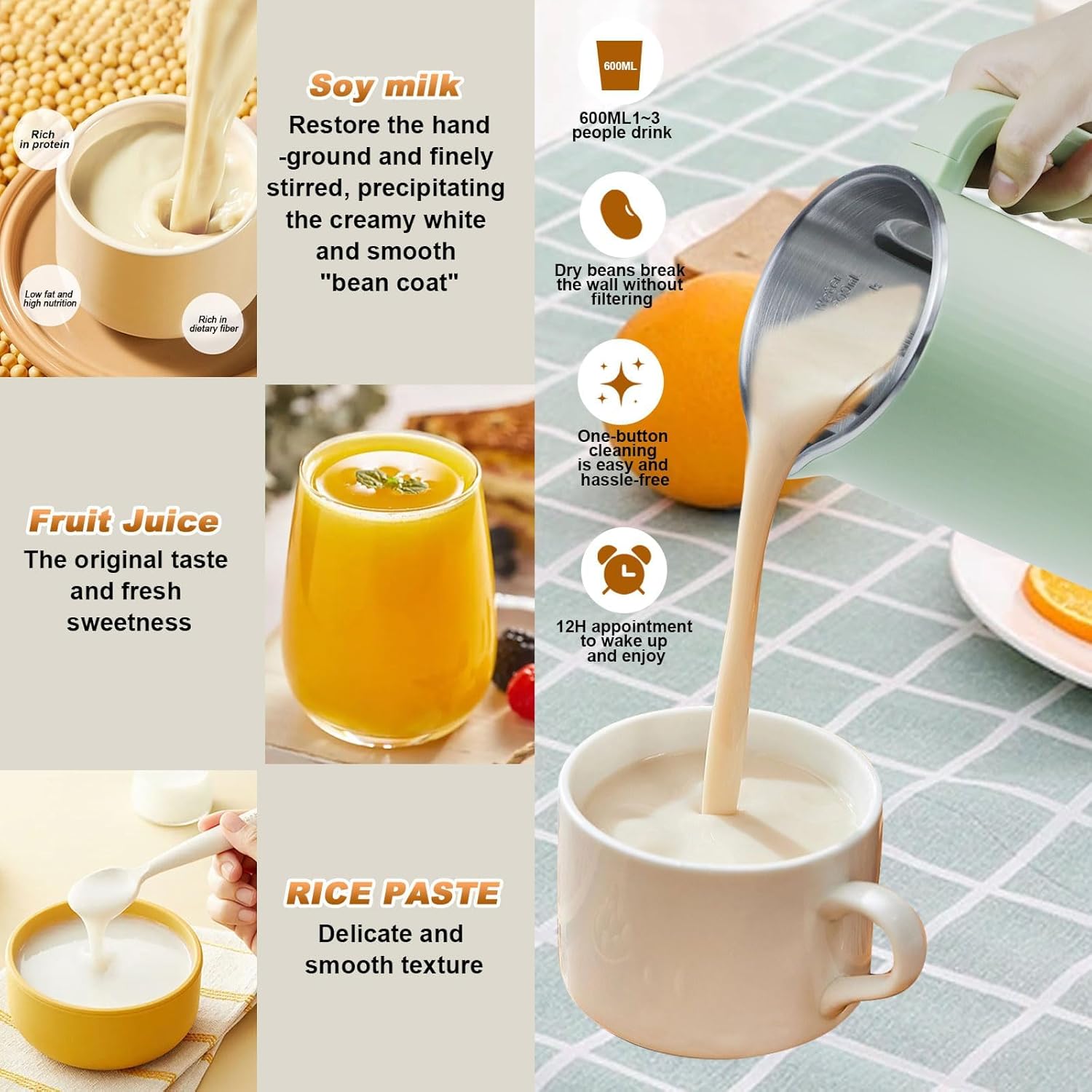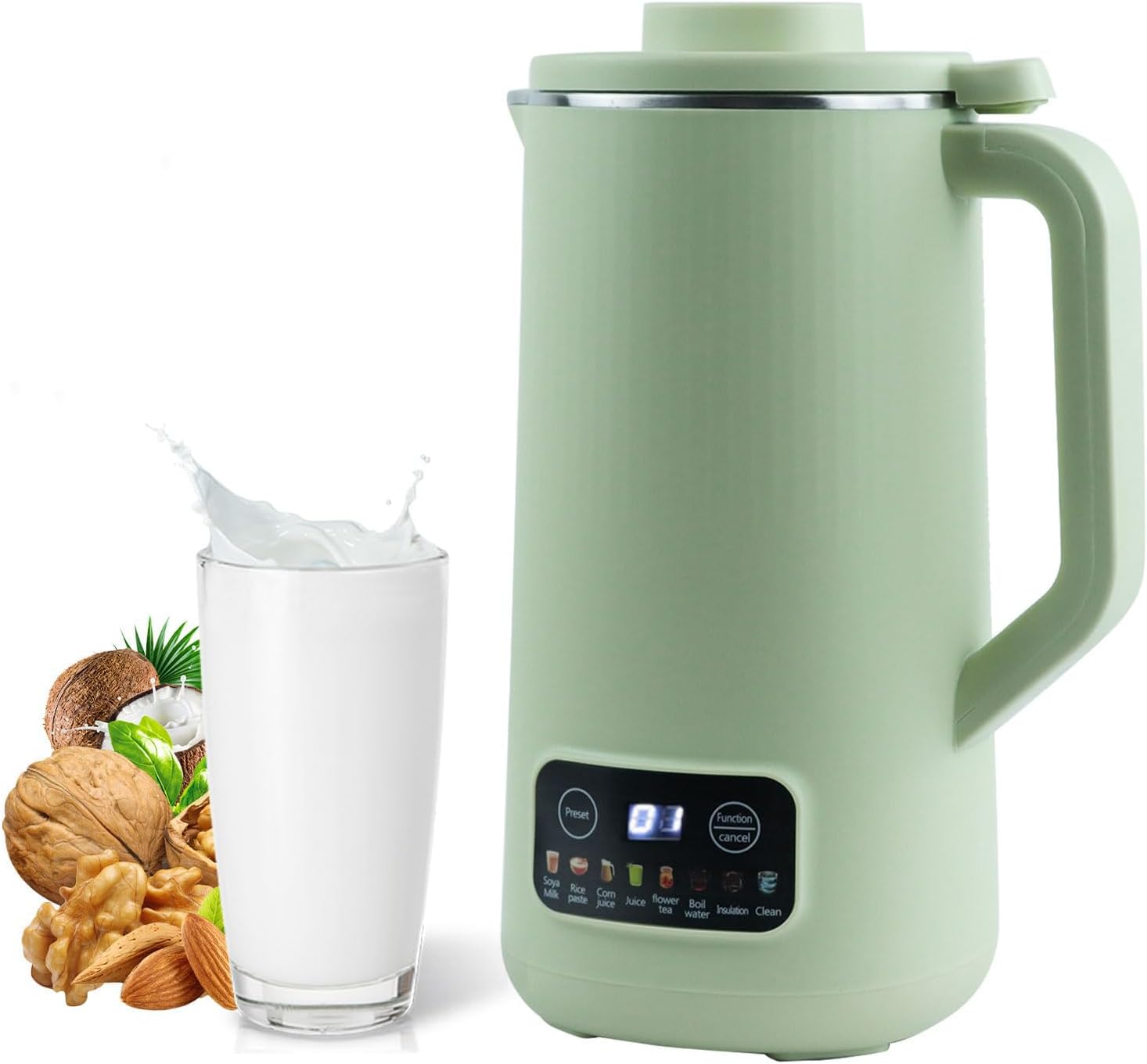 ?Easy Operate and Clean?This almond milk machine maker is suitable for daily use, just add ingredients, press the function/Cancel button to select the program, and it will automatically preheat, grind and cook. When it is finished, it is also very convenient to clean it with the wash function.