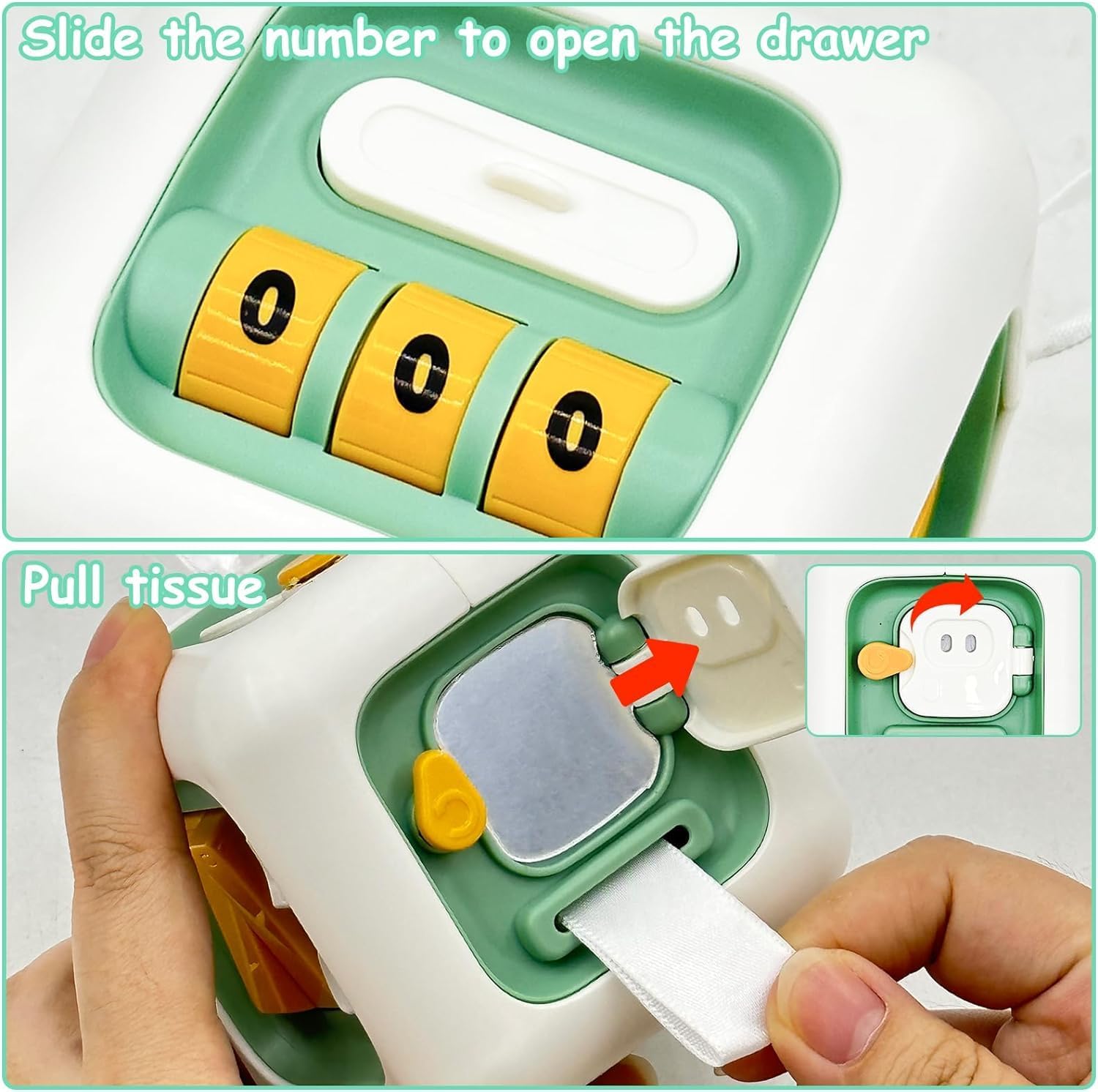 【6 in 1 Montessori Busy Cube Toy】This interactive busy cube features six learning activities.Activities includes Press the switch, Rotating fan blade, combination lock drawer,dial phone wheel,rotating clock,mimic drawer towel and ha-ha mirror many more to Build motor skills and entertain your little one.