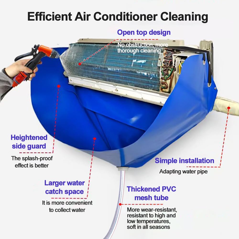 Professional Mini Split Ac Cleaning Bag Kit: This is a more durable mini split air conditioning service bag and more easier to use . Larger water catch space, water will not drip on the ground, highher side barrier make it more anti-splash.No cover design at the top, more easy to clean.