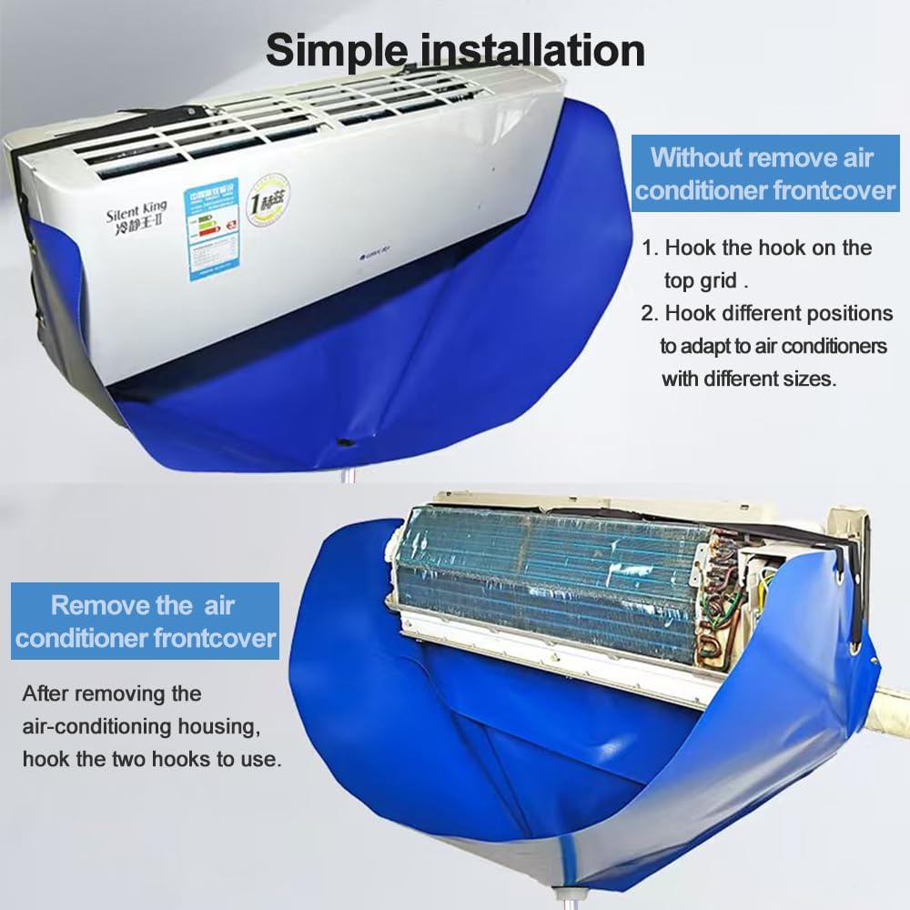 Simple and Fast Installation: Elastic rope and double hook design, this mini split ac cleaning cover bag can be used whether the air conditioner shell is removed or not, and the left and right air conditioning pipe does not affect the installation.