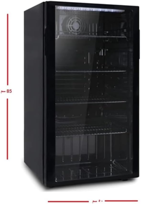 The SREEN Beverage Cooler SRBC-94DFB is a sleek and stylish black refrigerator with a net capacity of 94 liters, perfect for all your beverage cooling needs. Its exterior is finished with a glossy material, giving it a modern and elegant look. The door is made of glass, allowing you to easily see the contents inside. The interior features toughened glass shelves, providing durability and easy cleaning. The adjustable feet and removable door seal allow for easy customization and maintenance. The mechanical temperature control and low-e glass door help keep your beverages at the desired temperature. The blue light feature adds a touch of sophistication. This product has a gross capacity of 94 L and measures 831 mm in height, width, and depth. The product name is SREEN Beverage Cooler SRBC-94DFB and it is recommended to browse under Appliances/Kitchen/Refrigerators.
