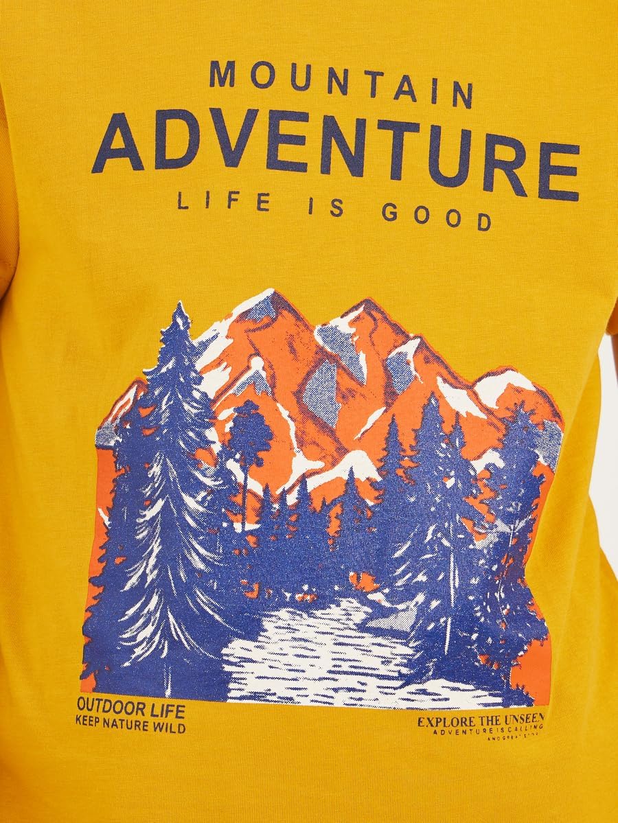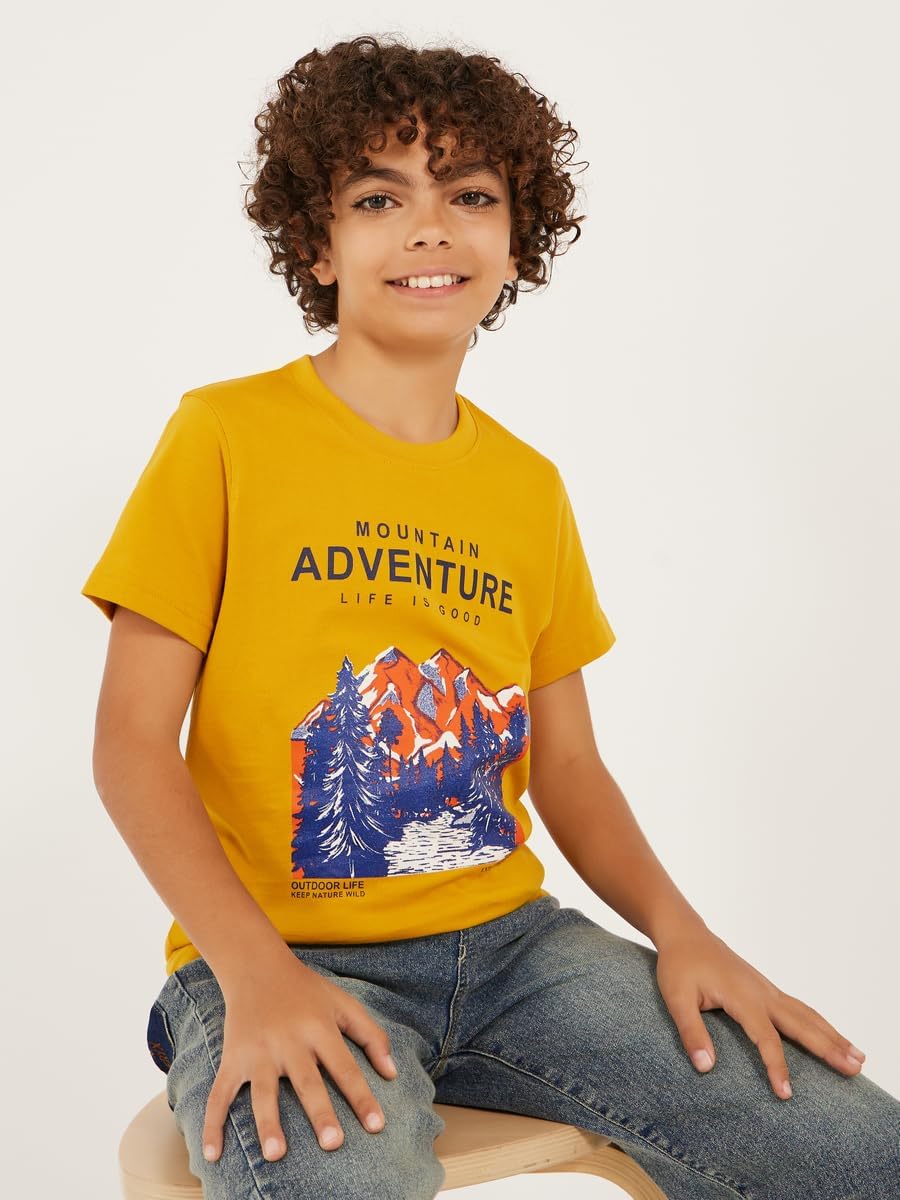 Size shown on Model: 9-10 YRS, Product Type: T-shirt, Pattern: Printed, Lifestyle: Daytime, Neck: Round Neck, Sleeve Length : Short Sleeves, Material: Cotton Blend, Fit: Regular, Care Instructions: Wash according to instructions on care label, Length: Regular, Designed with a refined and modern stylish look. Profound material offers immense comfort