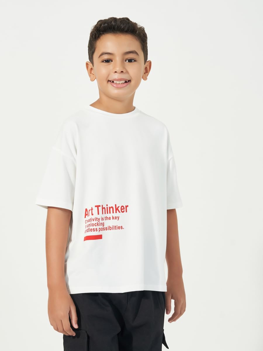 Size shown on Model: 9-10 YRS, Product Type: T-shirt, Pattern: Slogan, Lifestyle: Daytime, Neck: Round Neck, Sleeve Length : Short Sleeves, Material: Poly Blend, Fit: Oversized, Care Instructions: Wash according to instructions on care label, Length: Long Line, Designed with a refined and modern stylish look. Profound material offers immense comfort