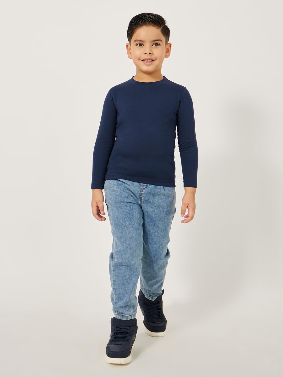 Size shown on Model: 5-6 YRS, Product Type: T-shirt, Pattern: Solid, Lifestyle: Daytime, Neck: Round Neck, Sleeve Length : Long Sleeves, Material: Cotton Blend, Fit: Regular, Care Instructions: Wash according to instructions on care label, Length: Regular, Designed with a refined and modern stylish look. Profound material offers immense comfort