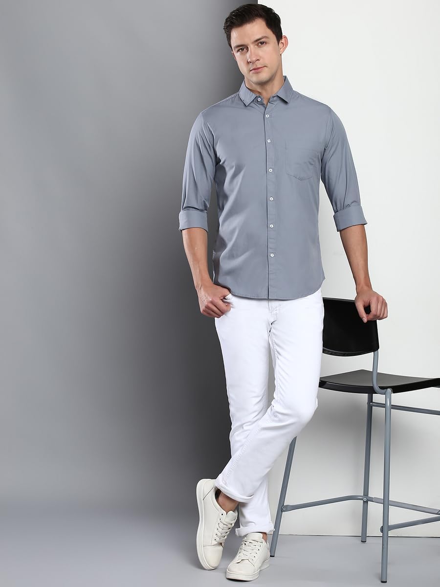 شراء Styli Men 7006450403 Solid Slim Fit Cotton Casual Shirt اون لاين من امازون او نون وحراج Styli Men 7006450403 Solid Slim Fit Cotton Casual Shirt
