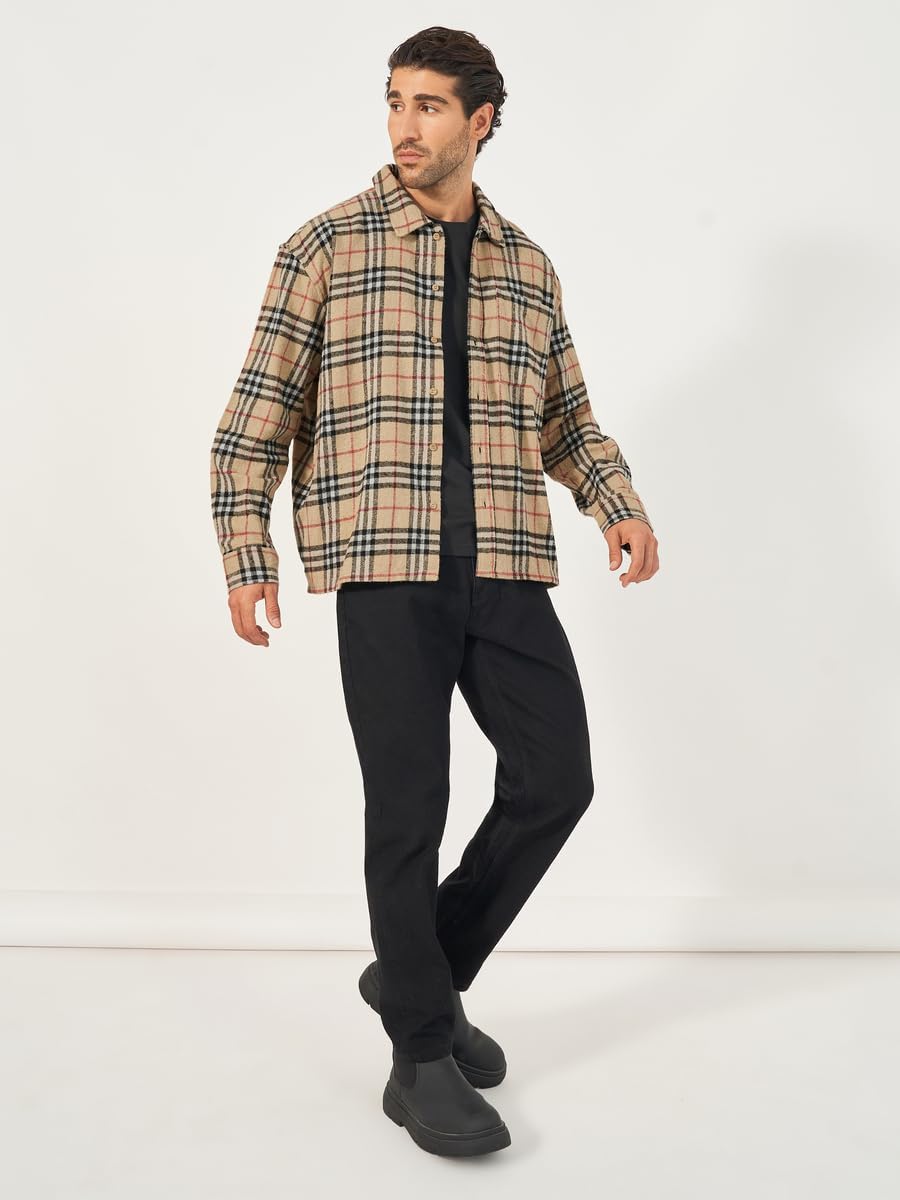 Styli Men’s Checked Button-Down Regular Flannel Shirt
