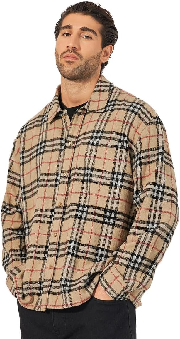 شراء Styli Men’s Checked Button-Down Regular Flannel Shirt اون لاين من امازون او نون وحراج Styli Men’s Checked Button-Down Regular Flannel Shirt