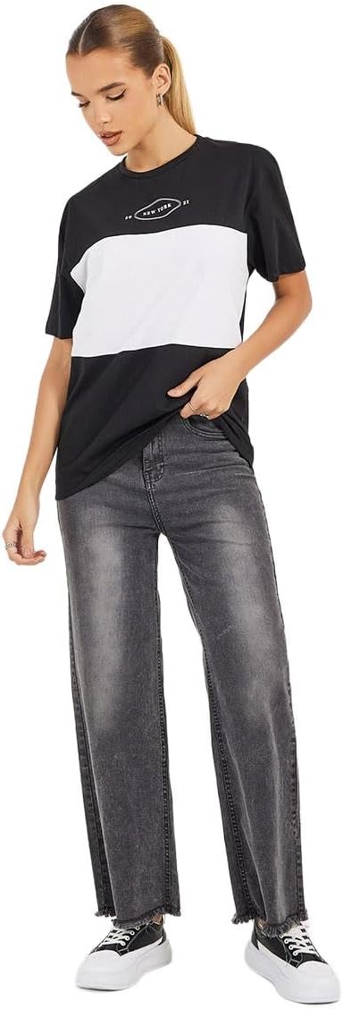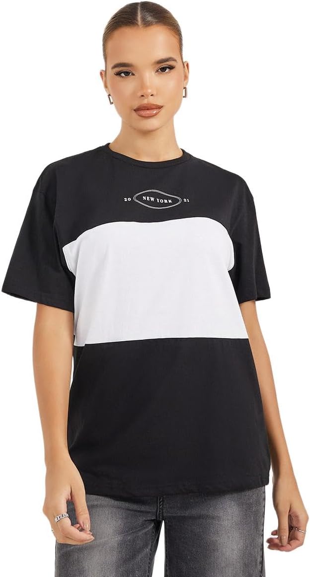 Size shown on Model: S, Product Type: Regular T-Shirt, Pattern: Color Block, Lifestyle: Daytime, Neck: Round Neck, Sleeve Length : Short Sleeves, Material: Cotton, Fit: Oversized, Care Instructions: Wash according to instructions on care label, Length: Long Line, Designed with a refined and modern stylish look. Profound material offers immense comfort
