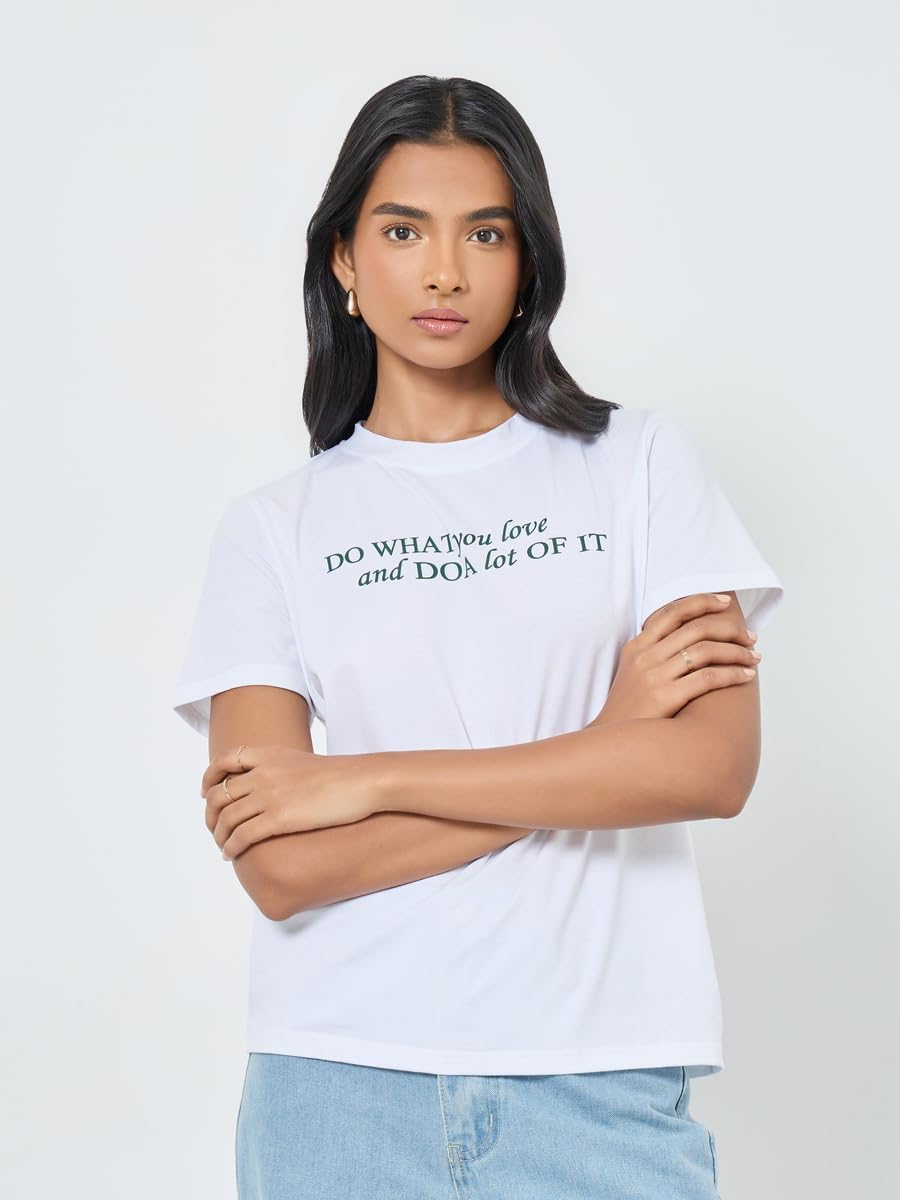 شراء Styli Women White Regular Fit Slogan T-Shirt اون لاين من امازون او نون وحراج Styli Women White Regular Fit Slogan T-Shirt