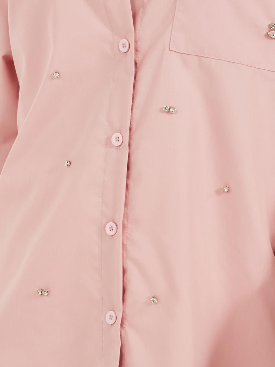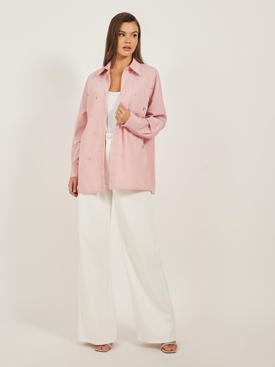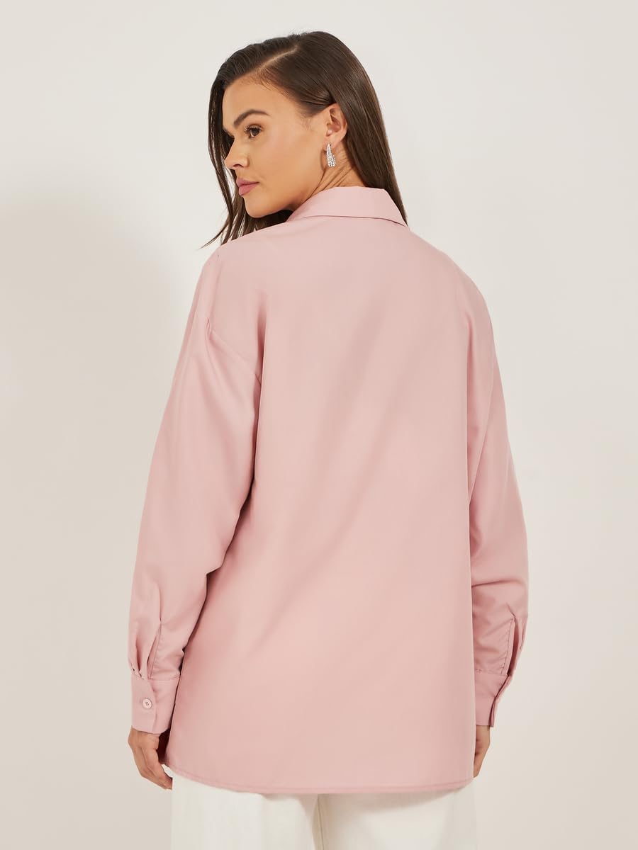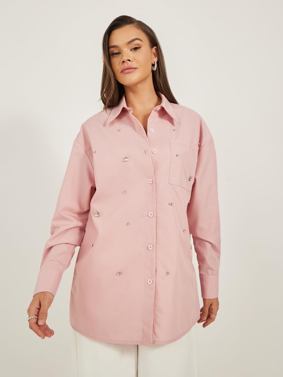 Size shown on Model: S, Product Type: Shirt, Pattern: Embellished, Lifestyle: Evening, Neck: Collared, Sleeve Length : Long Sleeves, Material: Polyester, Fit: Oversized, Care Instructions: Wash according to instructions on care label, Length: Regular, Designed with a refined and modern stylish look. Profound material offers immense comfort