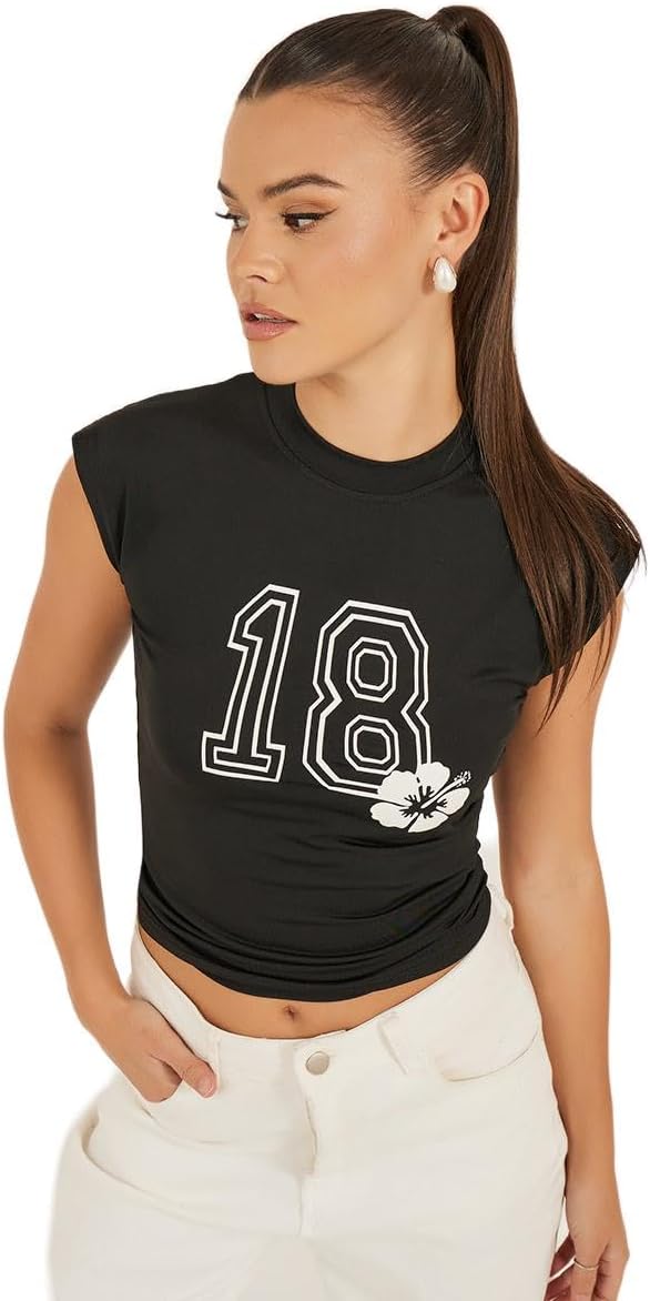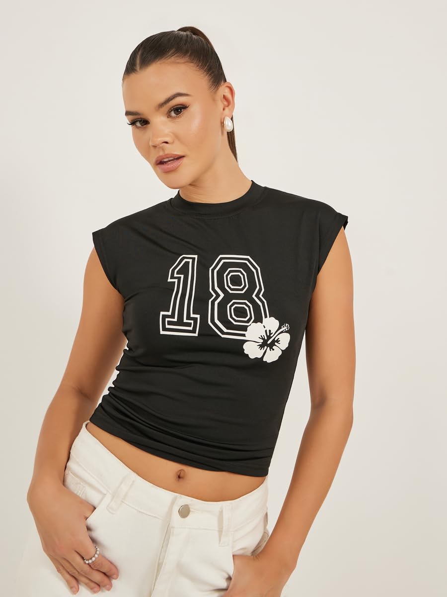 Size shown on Model: S, Product Type: Tank, Pattern: Graphic, Lifestyle: Daytime, Neck: High Neck, Sleeve Length : Sleeveless, Material: Poly Blend, Fit: Fitted, Care Instructions: Wash according to instructions on care label, Length: Regular, Designed with a refined and modern stylish look. Profound material offers immense comfort